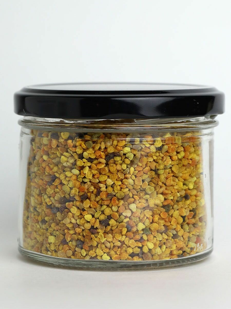 Пыльца цветочная натуральная 120 г в стеклянной банке, сбор 2024, пчелиная пыльца, обножка, сушеная, пищевая , витамины