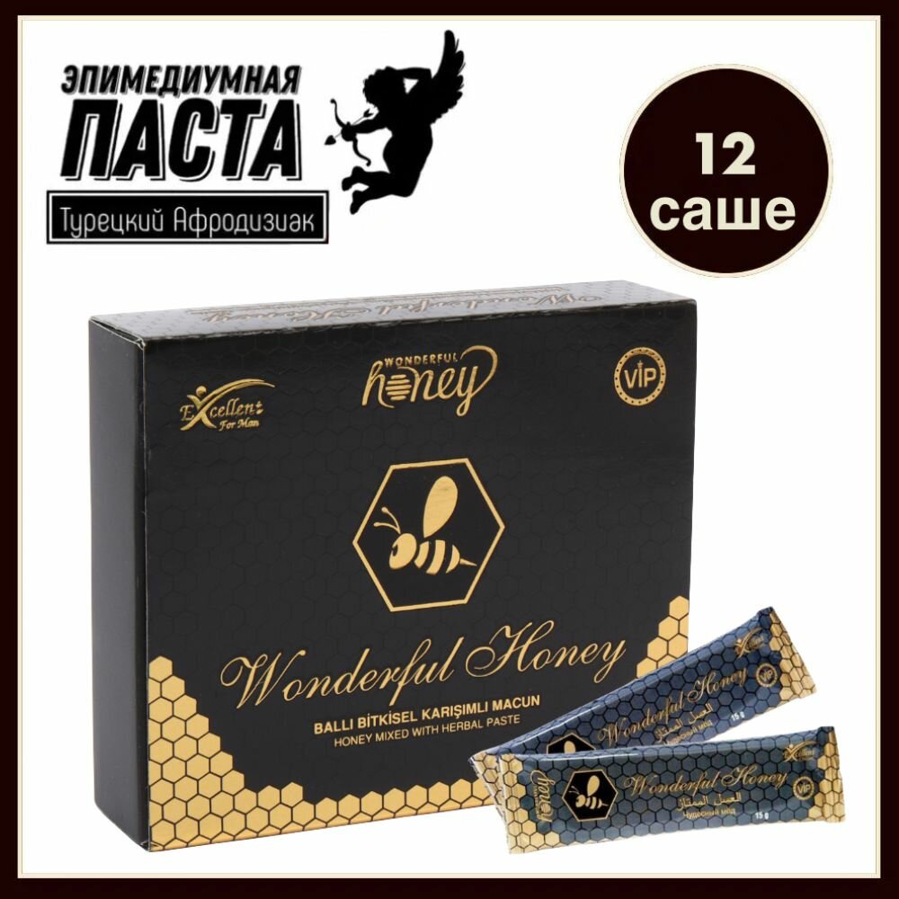 Эпимедиумная паста Wonderful Honey, Турецкая паста, 12 саше / Мёд для здоровья / возбуждающий интересное: