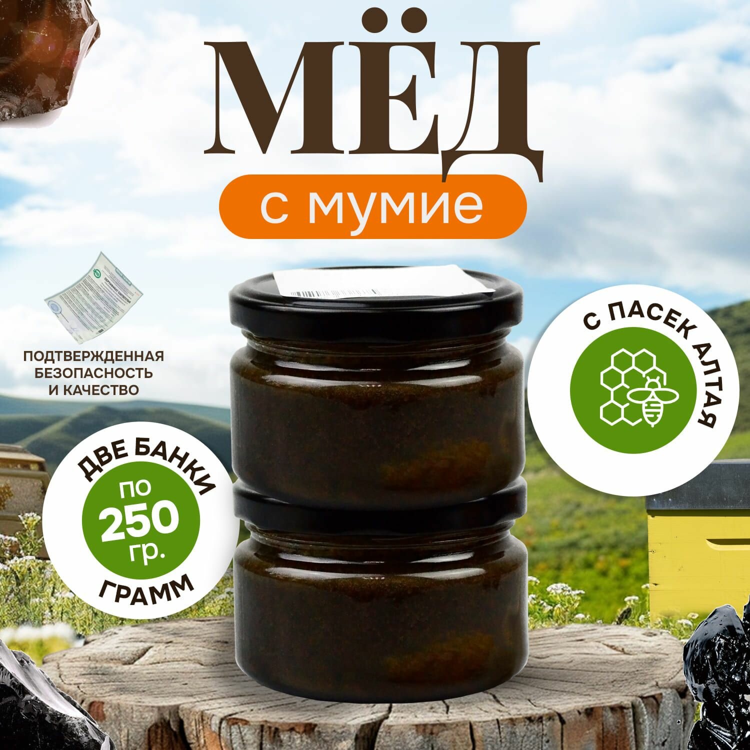 | Состав | мед натуральный, мумие. Не содержит искусственных консервантов, ароматизаторов и красителей |
