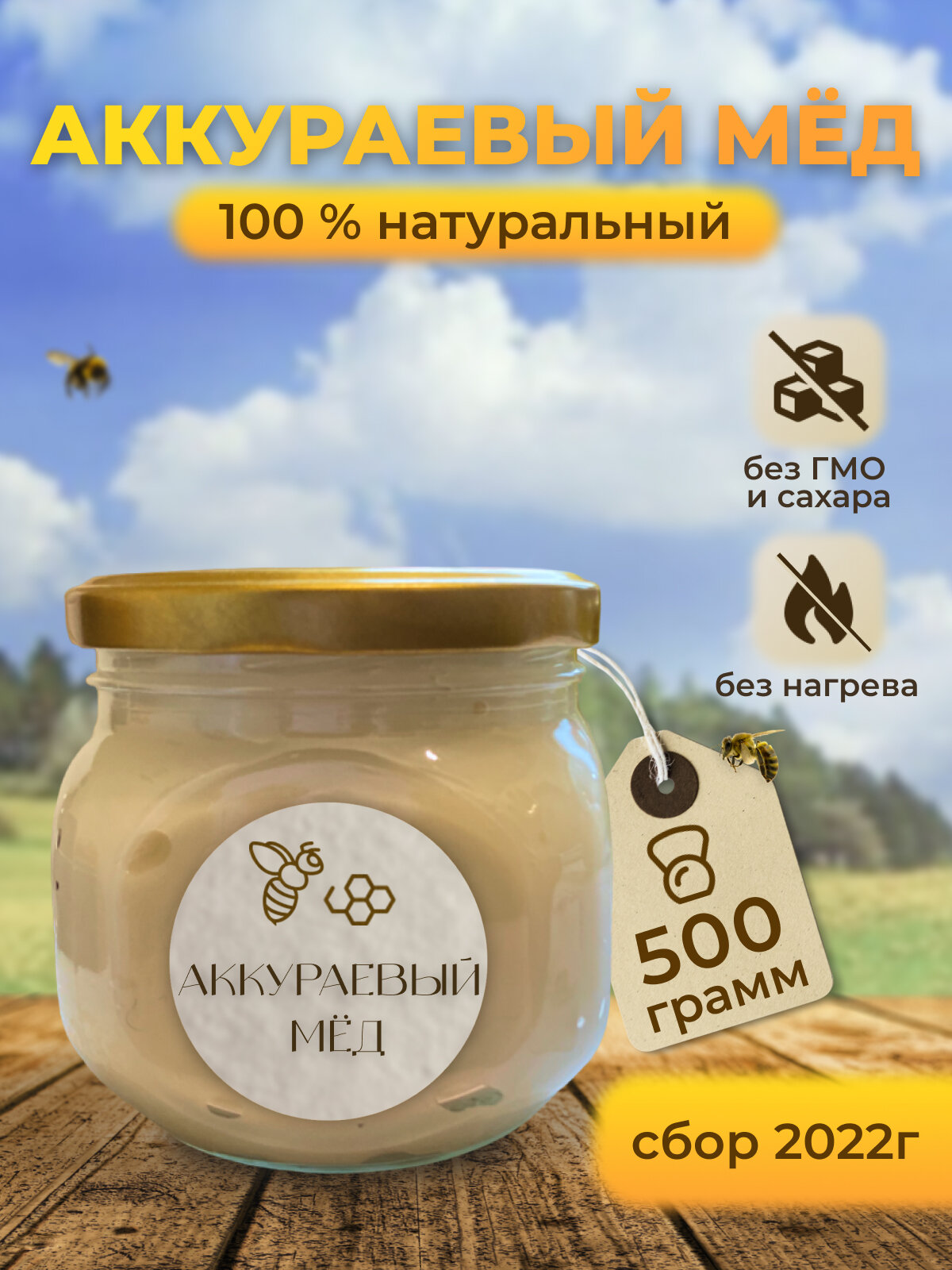 Купить Аккураевый мед натуральный 500 грам, густой, к чаю в стеклянной банке