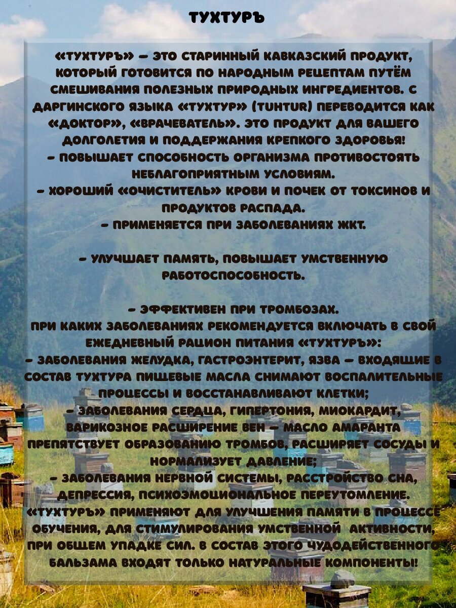 Тухтуръ натуральный высокогорный мед, с живицей хвои, маслом черного тмина, 350г интересное: