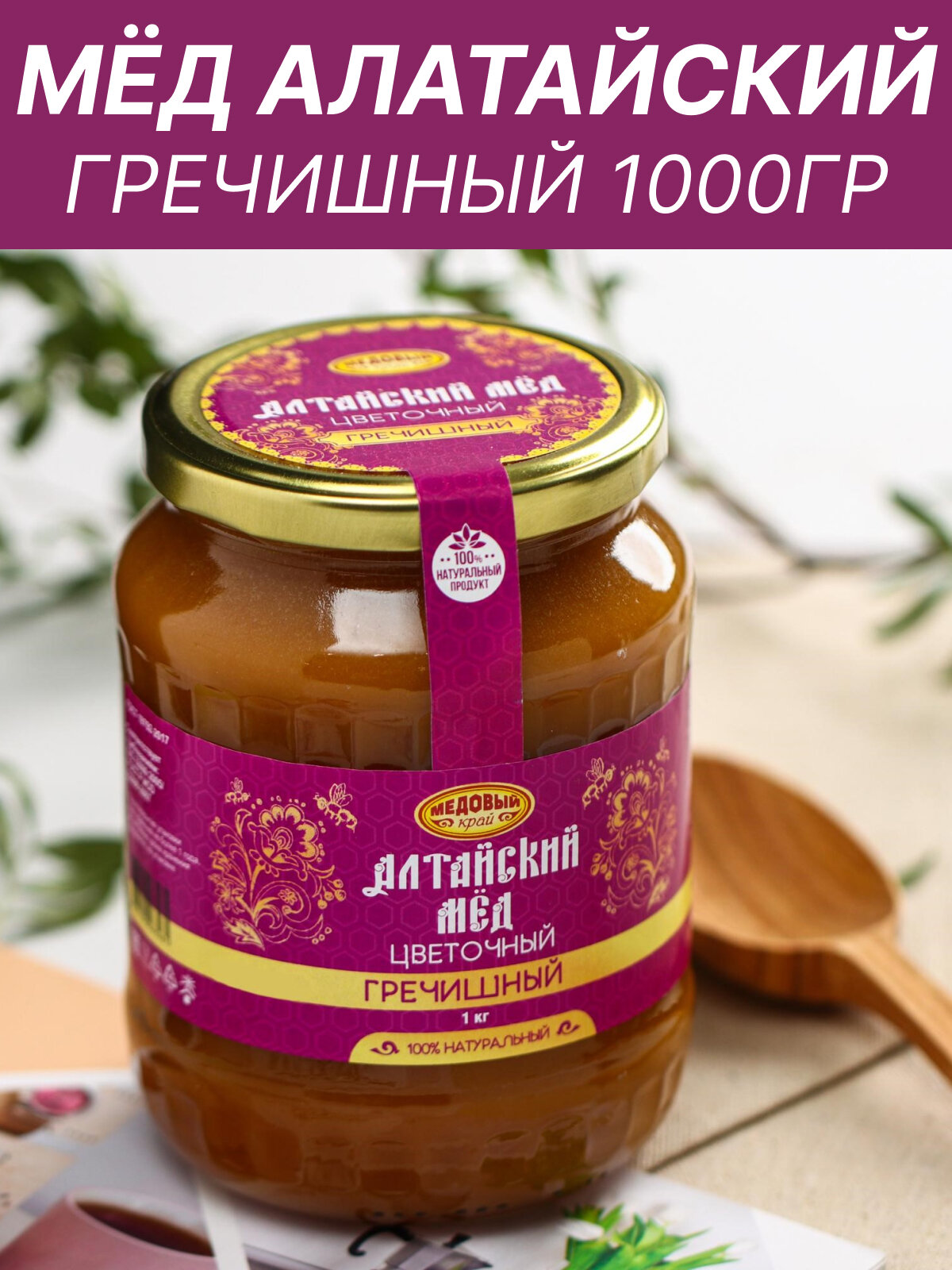 Медовый край Мёд алтайский гречишный, натуральный цветочный, 1000 г