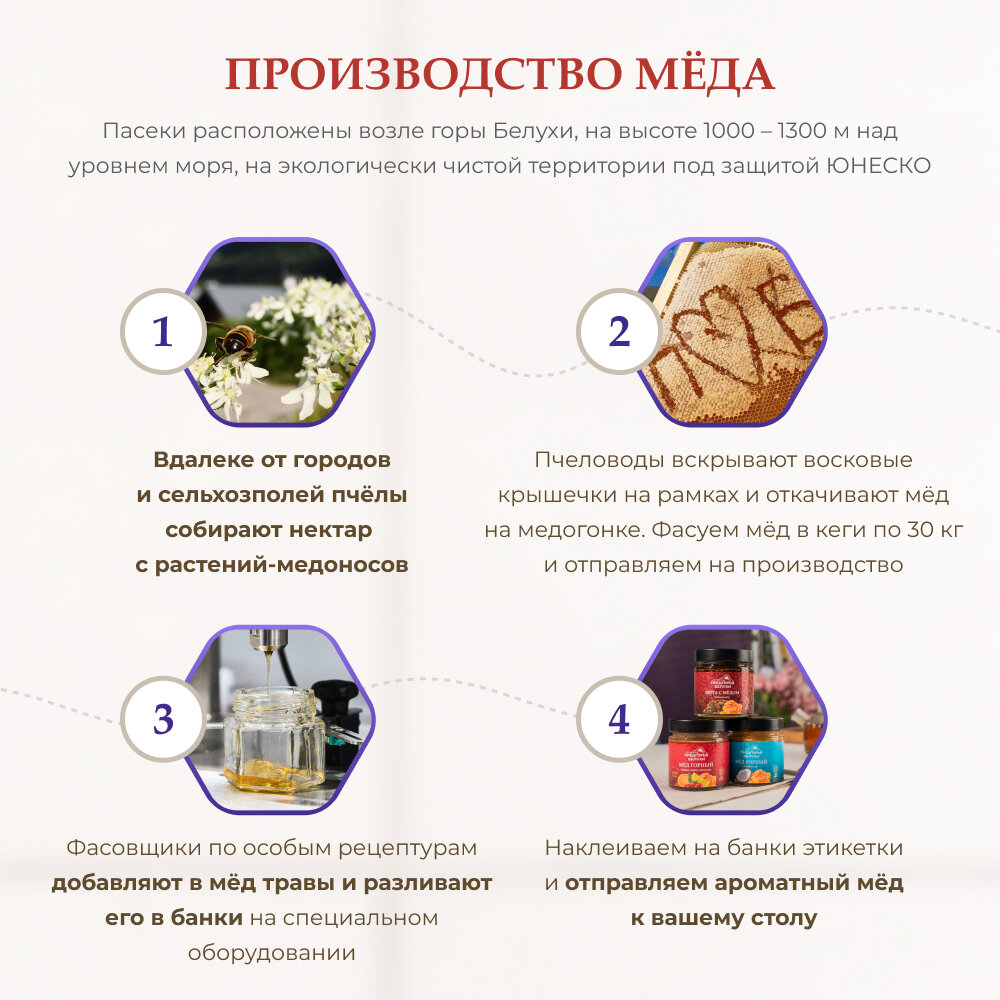 Мед горный натуральный разнотравье с красным корнем Предгорья Белухи / Smart Bee, 140 гр интересное:
