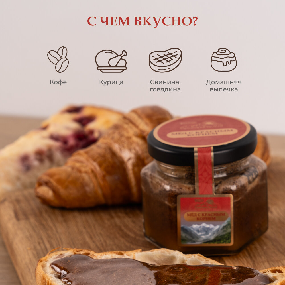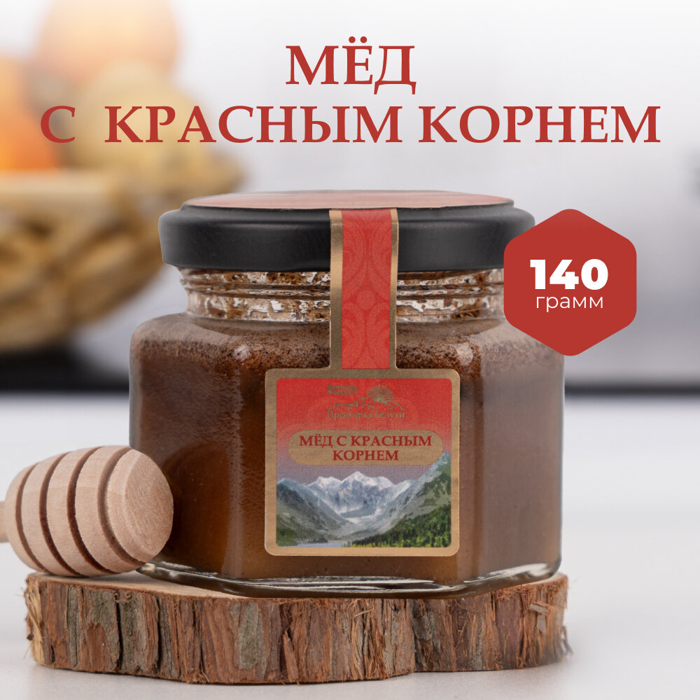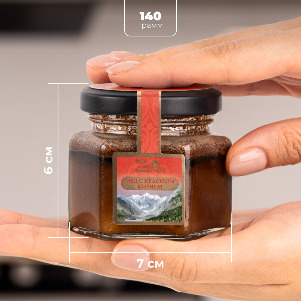 | Состав | Мёд горный натуральный разнотравье, красный корень. |