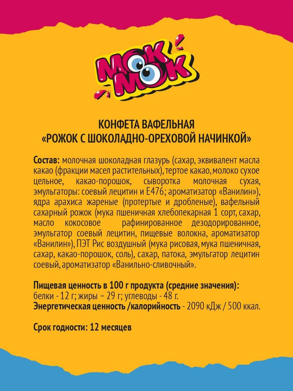 Конфеты детские Мок Мок вафельные рожки с шоколадом и орехами, 20 шт по 25 г интересное: