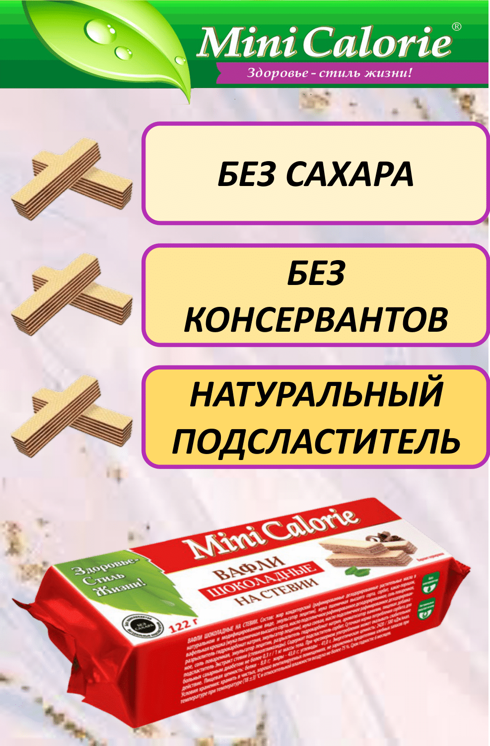 Ниже Вы можете прочитать отзывы на 4 шт Вафли шоколадные на стевии Mini Calorie 122 г, ознакомится с подробными характеристиками, посмотреть интересные обзоры и фотографии на 4 шт Вафли шоколадные на стевии Mini Calorie 122 г.