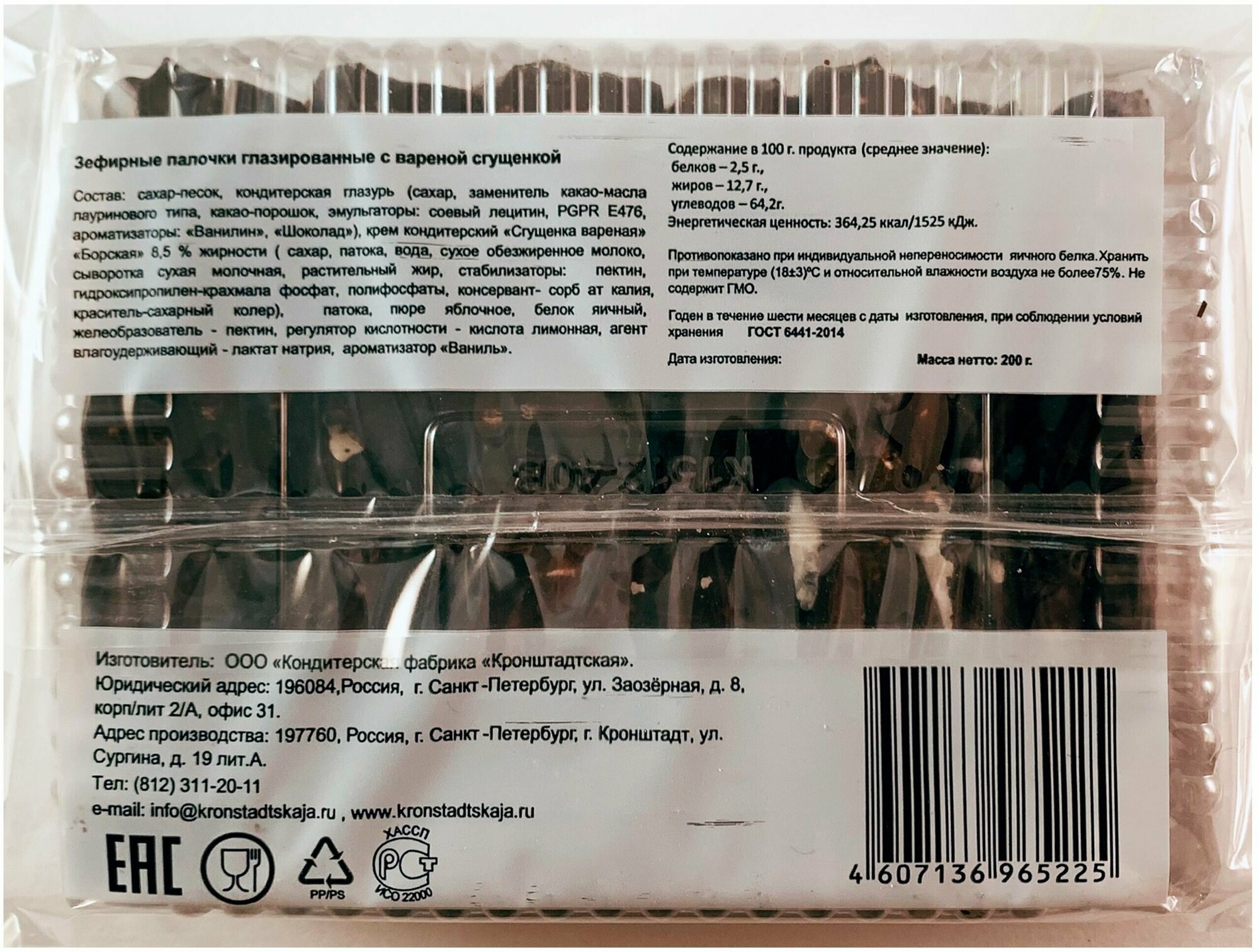 Зефирные палочки глазированные с варенной сгущенкой КФ кронштадтская, 200г х 2шт интересное: