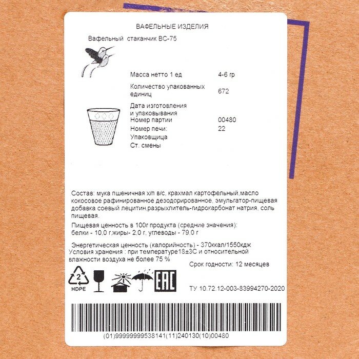 Вафельный стаканчик классический с усиленным дном, 672 шт, 10019552 интересное: