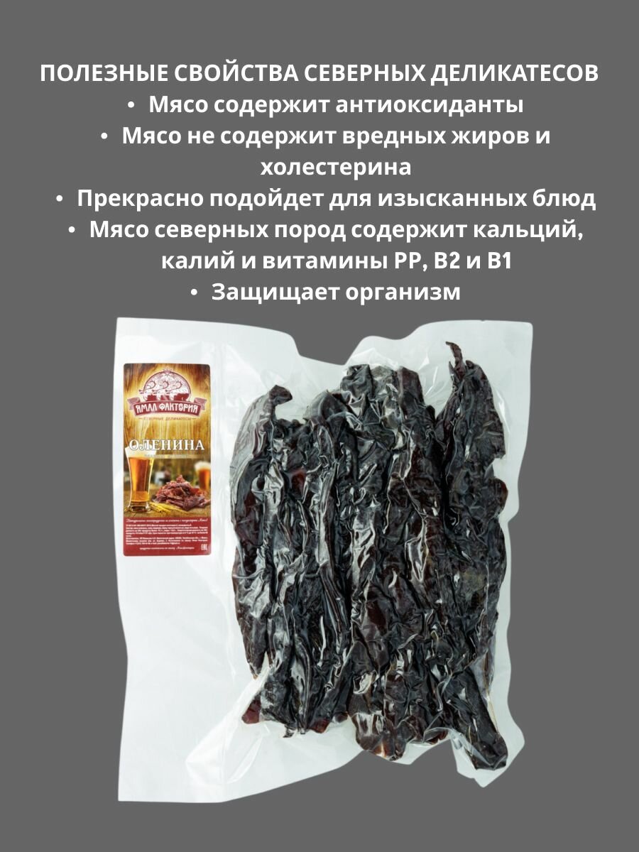 | Дополнительная информация | Почувствуйте вкус дикой природы! Вяленая оленина - это не просто снек, это настоящий деликатес с Ямала, признанный на международном уровне! |