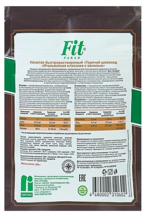 Горячий шоколад FitParad с ванильным вкусом, 200 грамм интересное: