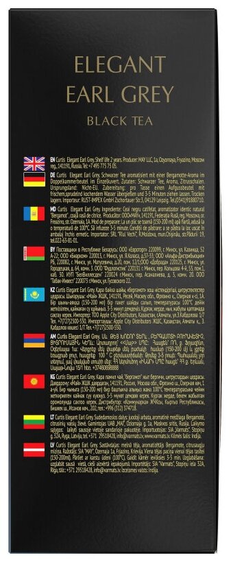 | Состав | чай черный байховый, ароматизатор бергамот, цедра цитрусовых |