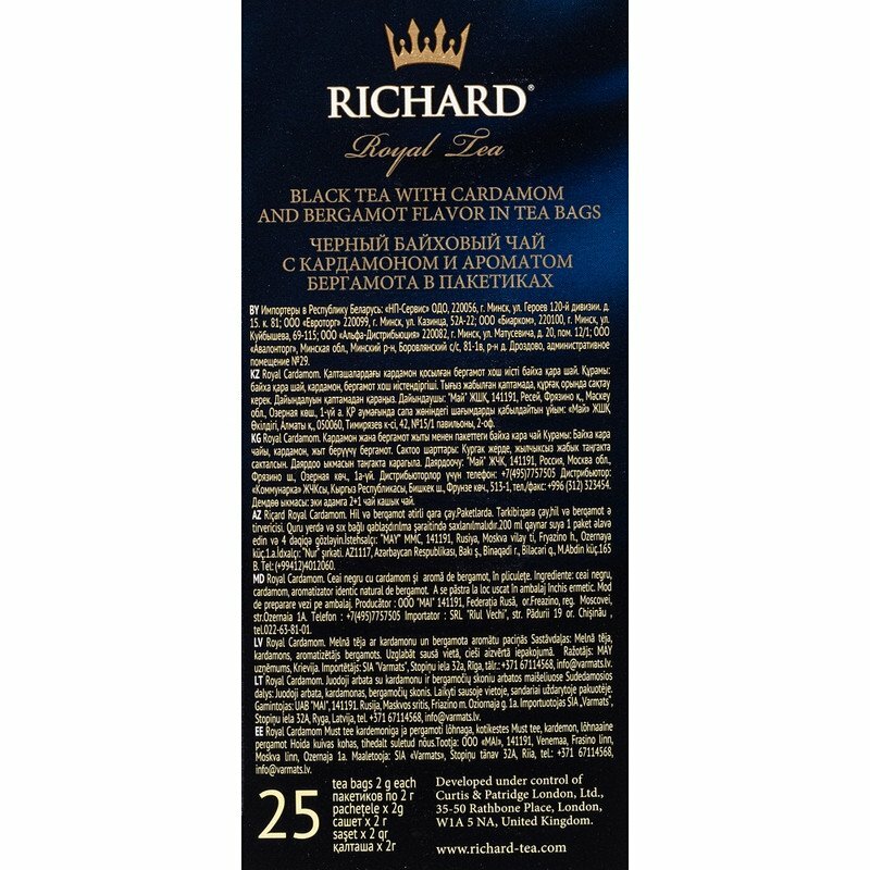 Чай Richard "Royal Cardamom", черный с добавками, 25 пакетиков интересное: