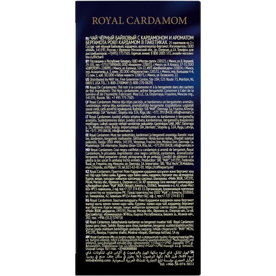 Купить Чай Richard "Royal Cardamom", черный с добавками, 25 пакетиков
