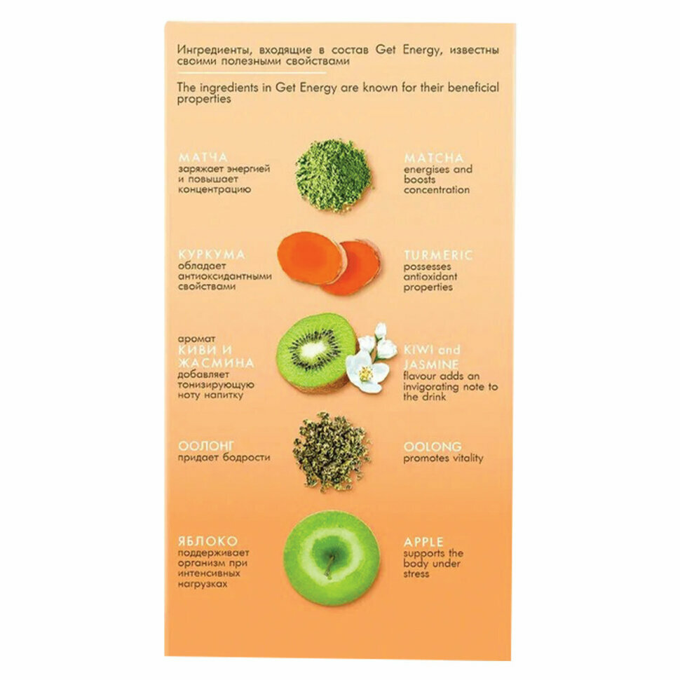 Чай Tess GET ENERGY пакетированный, улун с добавками, 20 пакетиков