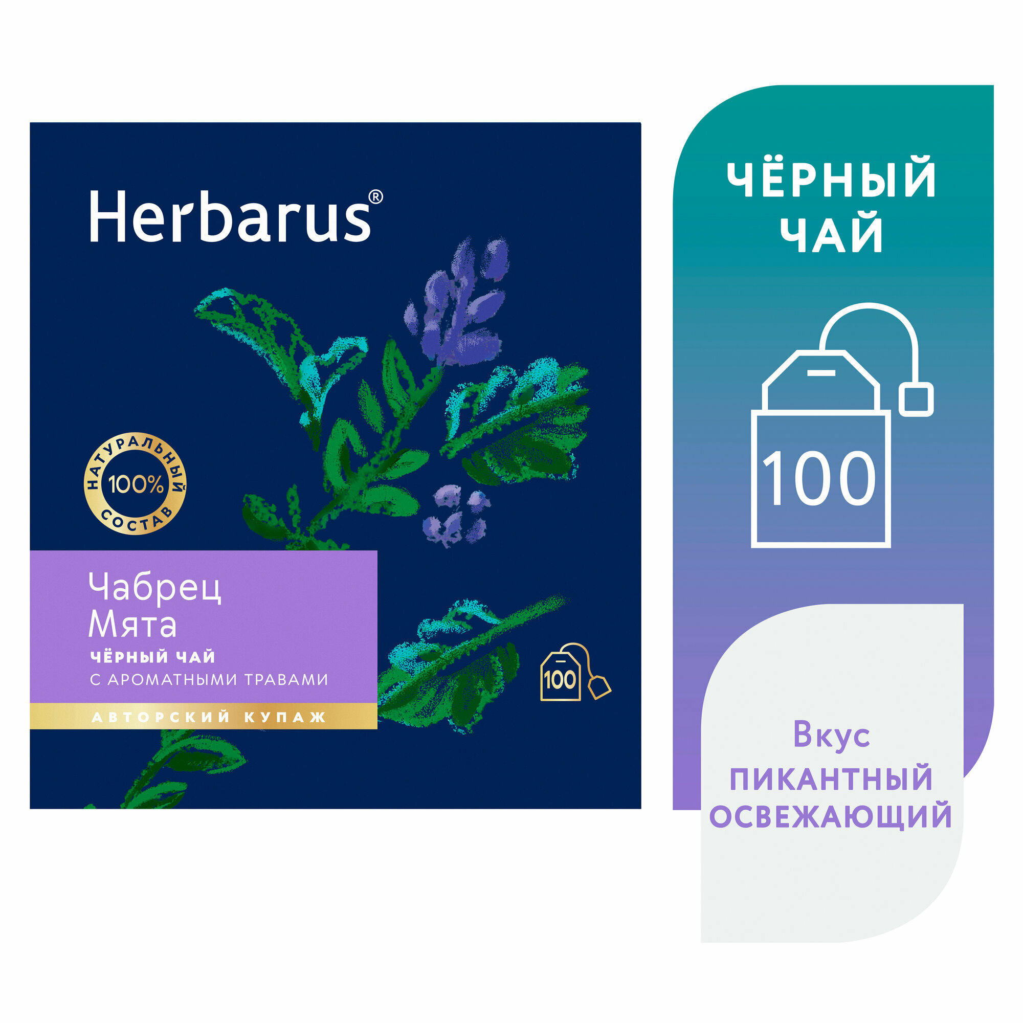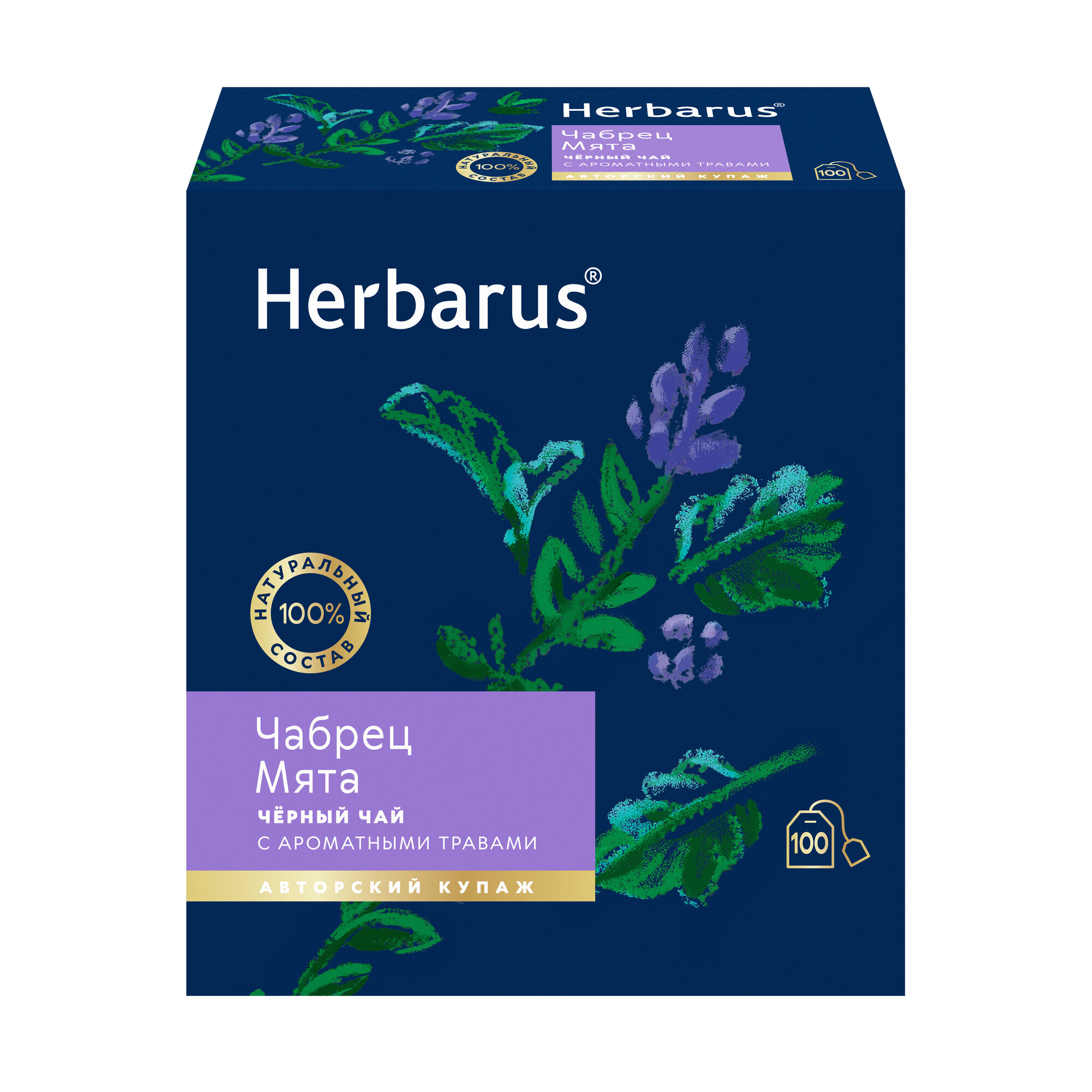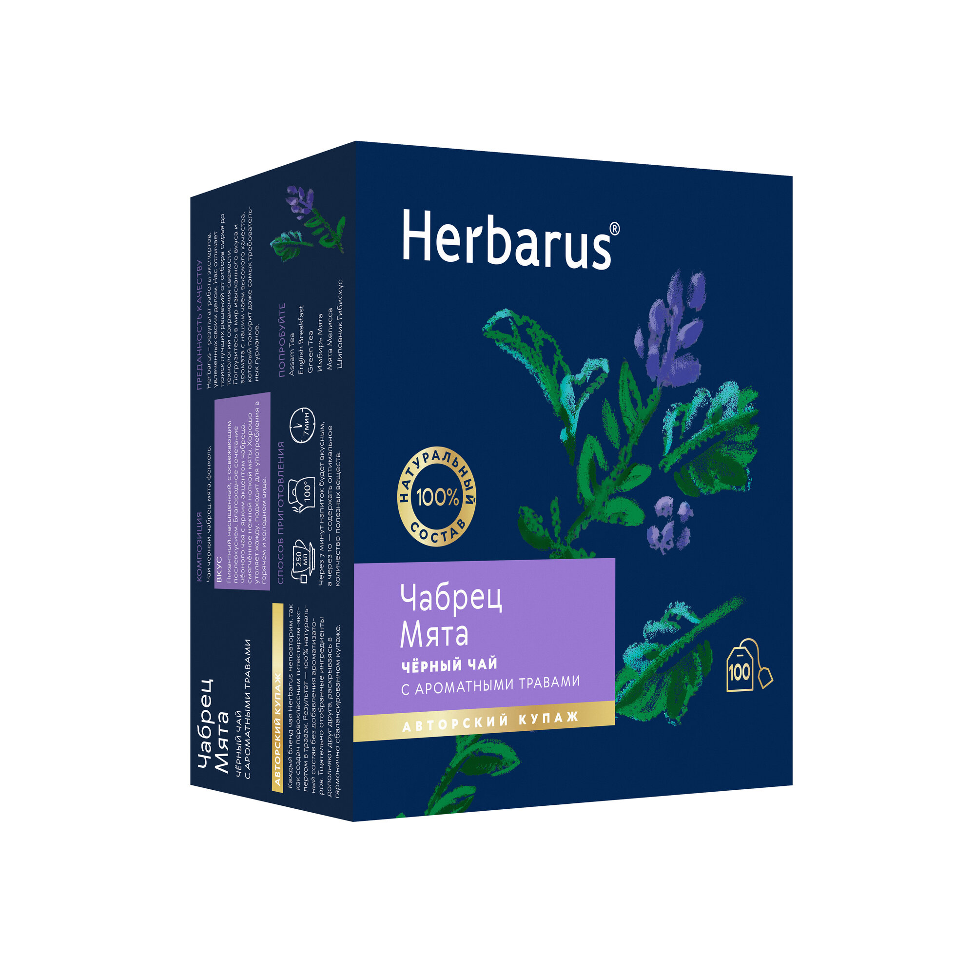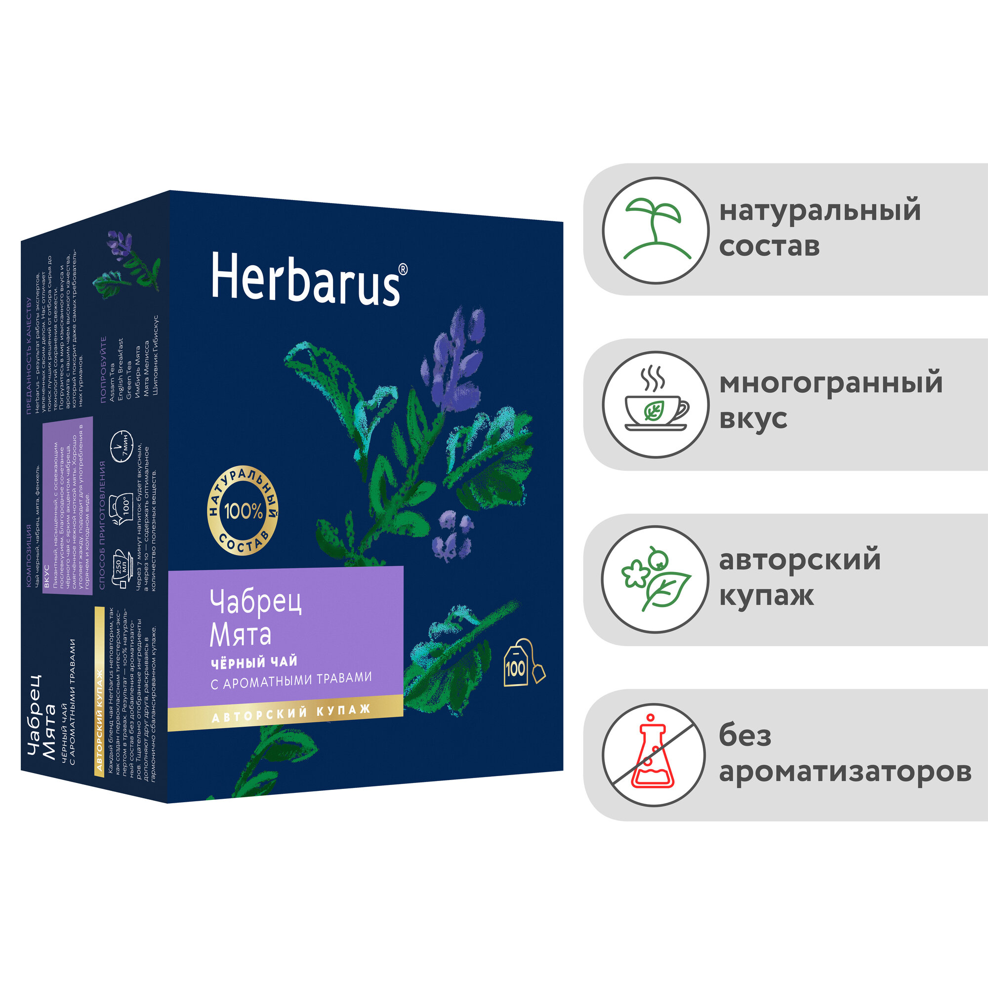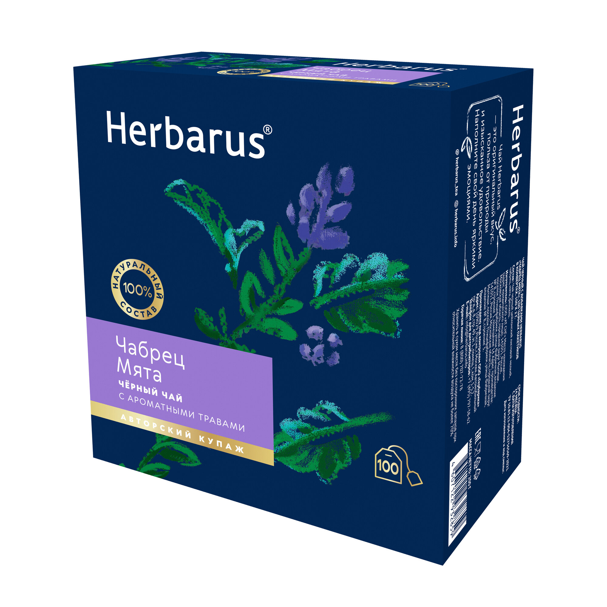 Чай черный с добавками в пакетиках Herbarus "Чабрец Мята", 100 шт. интересное: