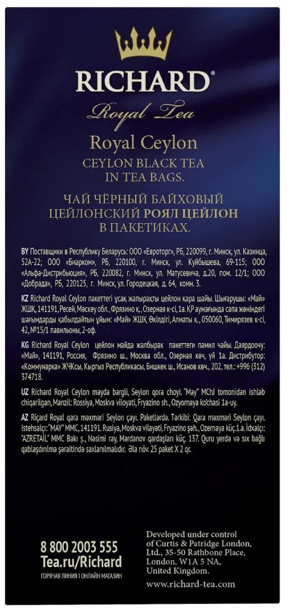 Чай черный Richard Royal Ceylon 25 пак - 2 штуки