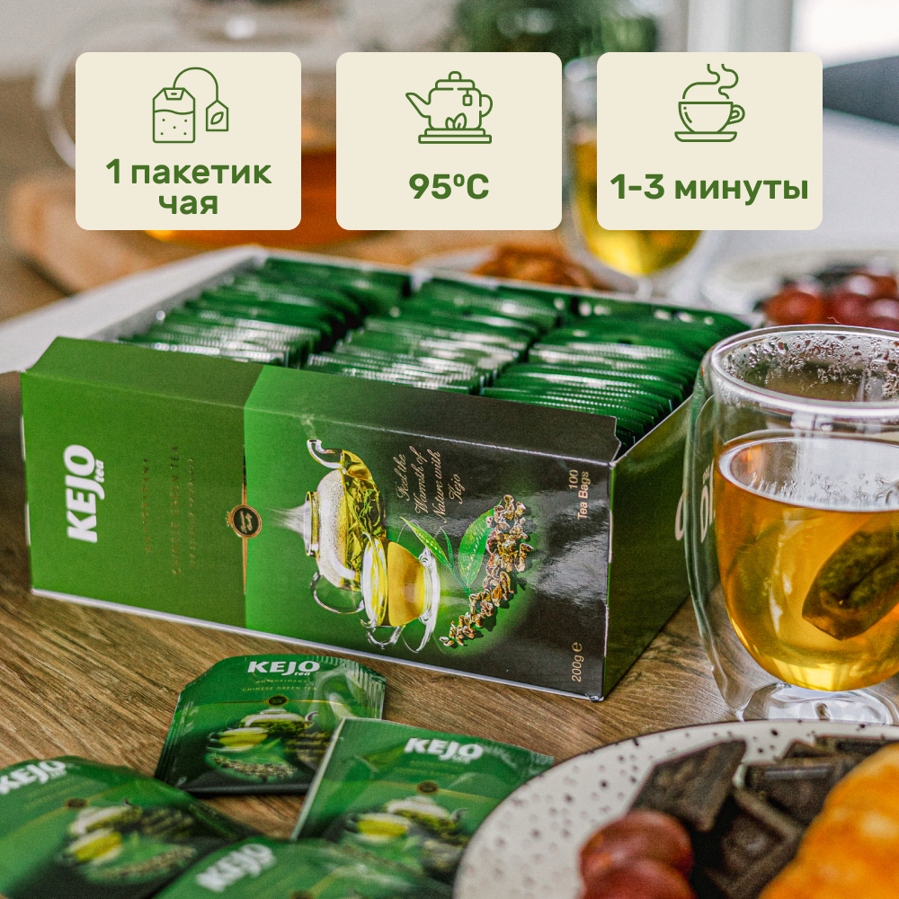 Купить Чай в пакетиках зеленый, ANTIOXIDANT CHINESE GREEN TEA, KejoTea, 100 шт.