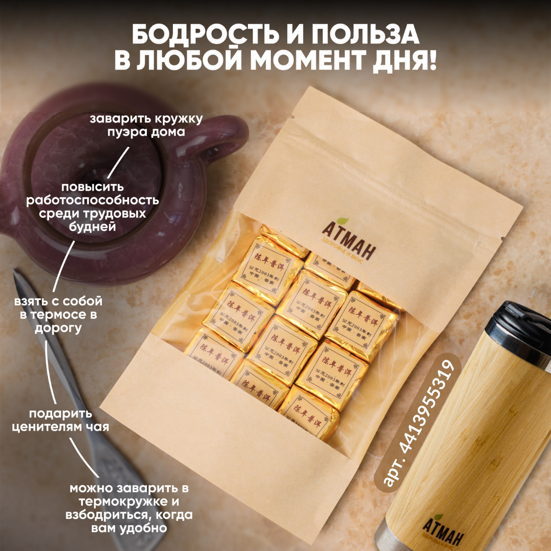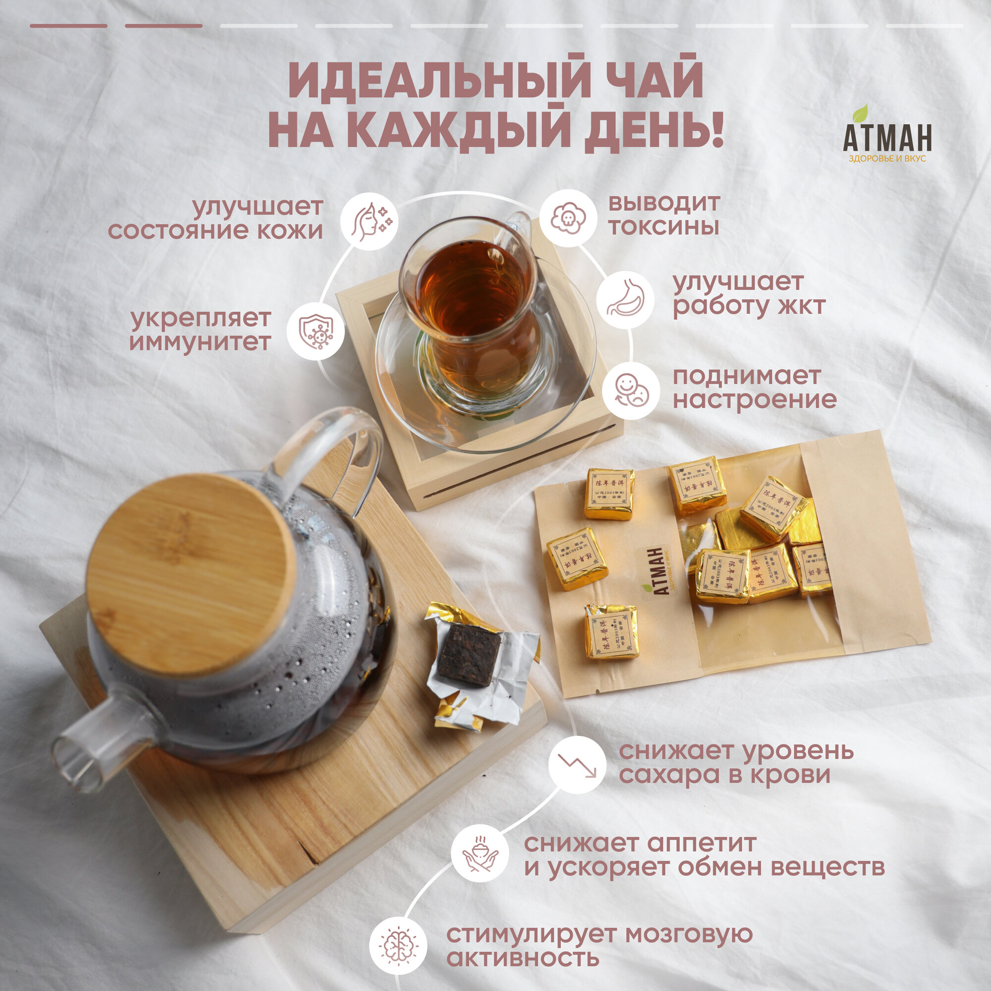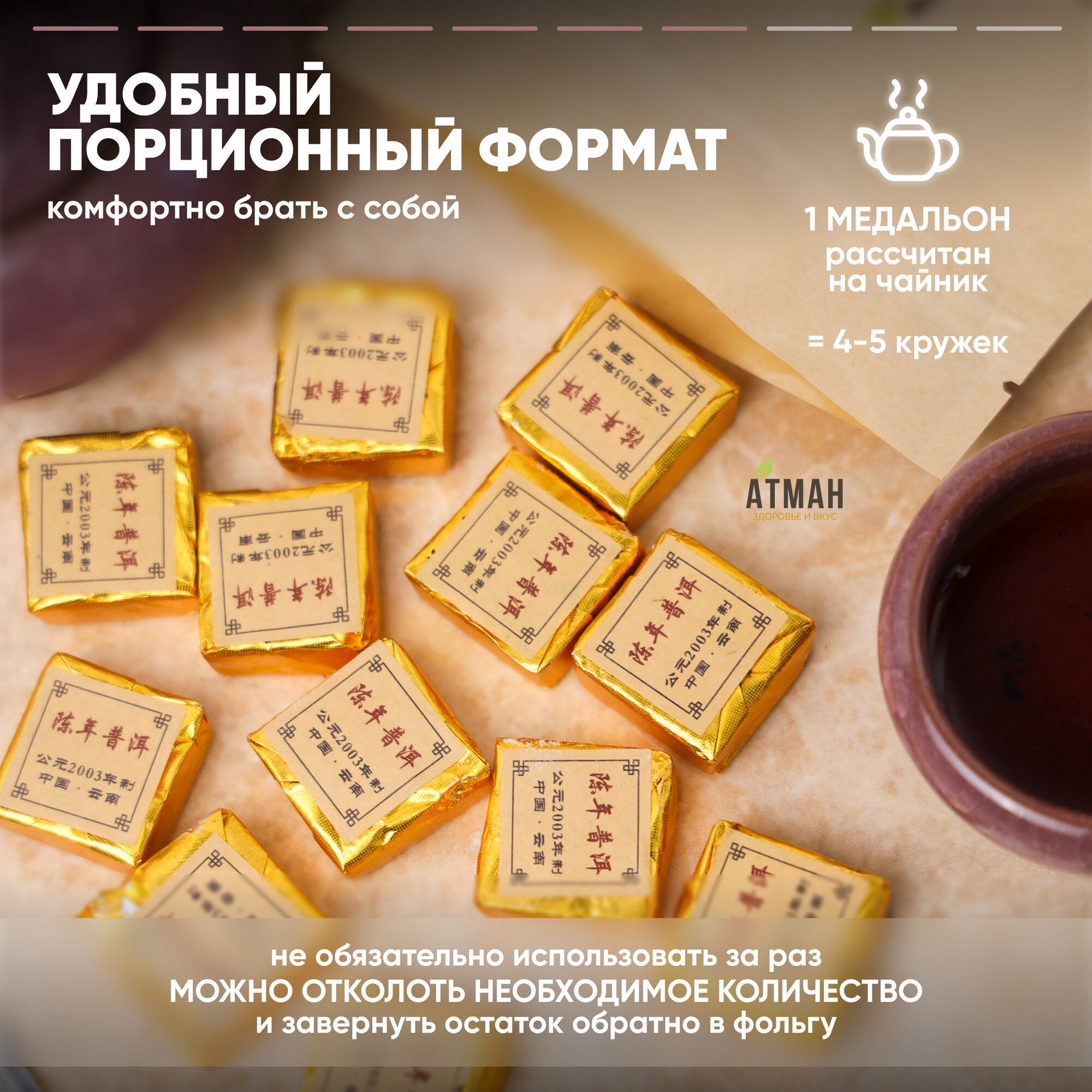Настоящий Шу Пуэр чай, черный листовой прессованный, медальоны по 6 гр 24 шт, АТМАН