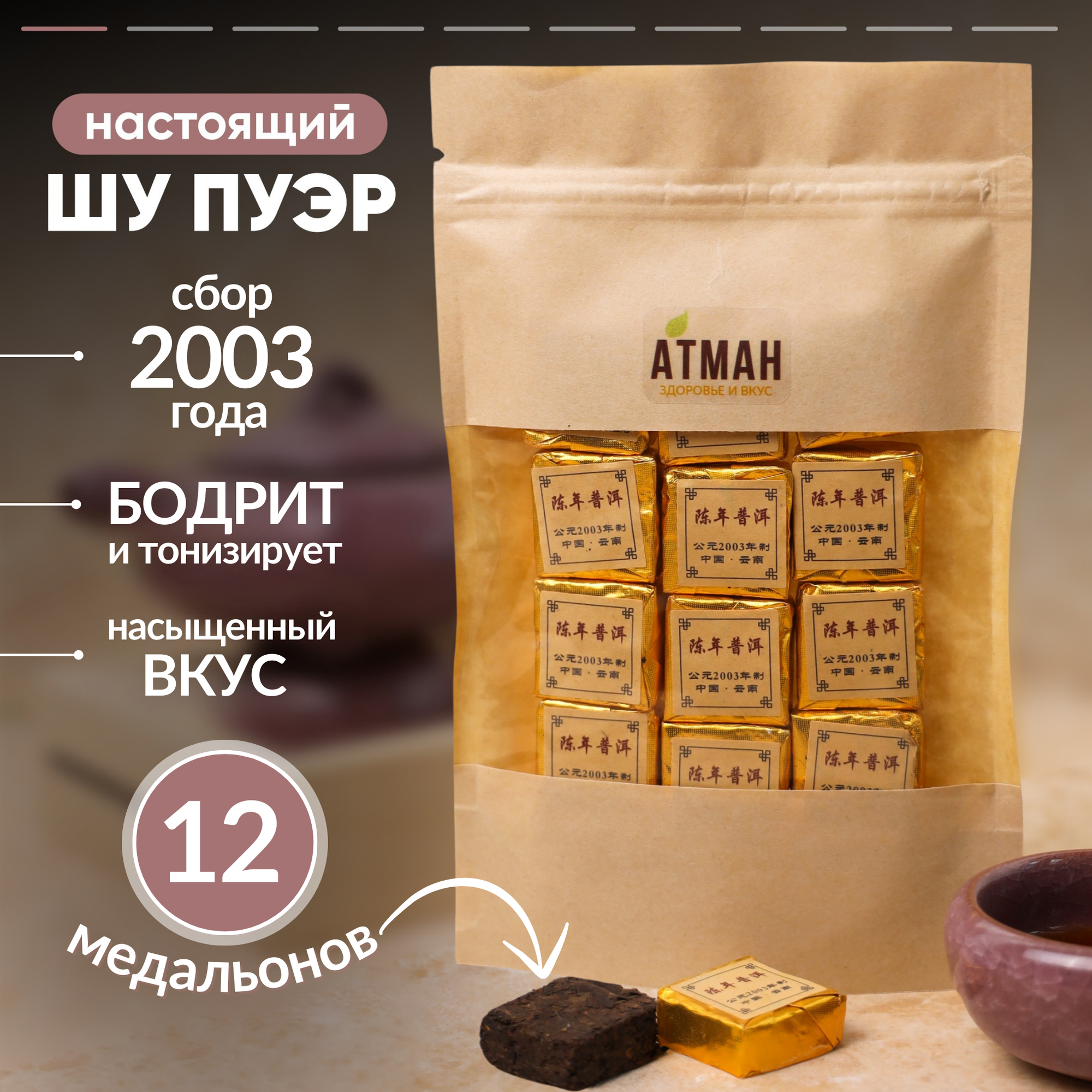 Купить Чай черный Шу Пуэр листовой прессованный китайский, чай китайский заварной, 12 медальонов, чай подарочный набор, АТМАН