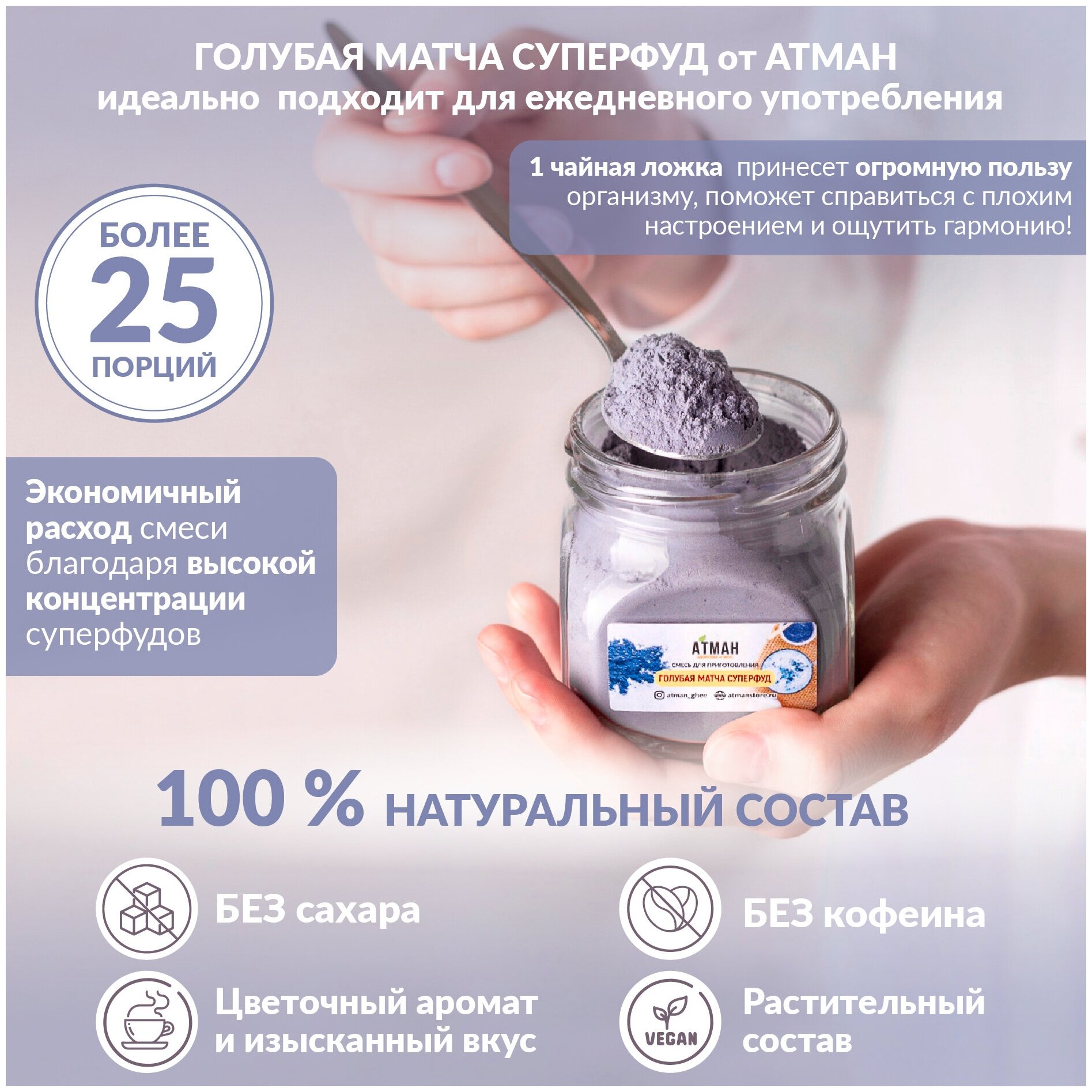 Чай голубая матча, мини версия латте суперфуд 40 гр, АТМАН