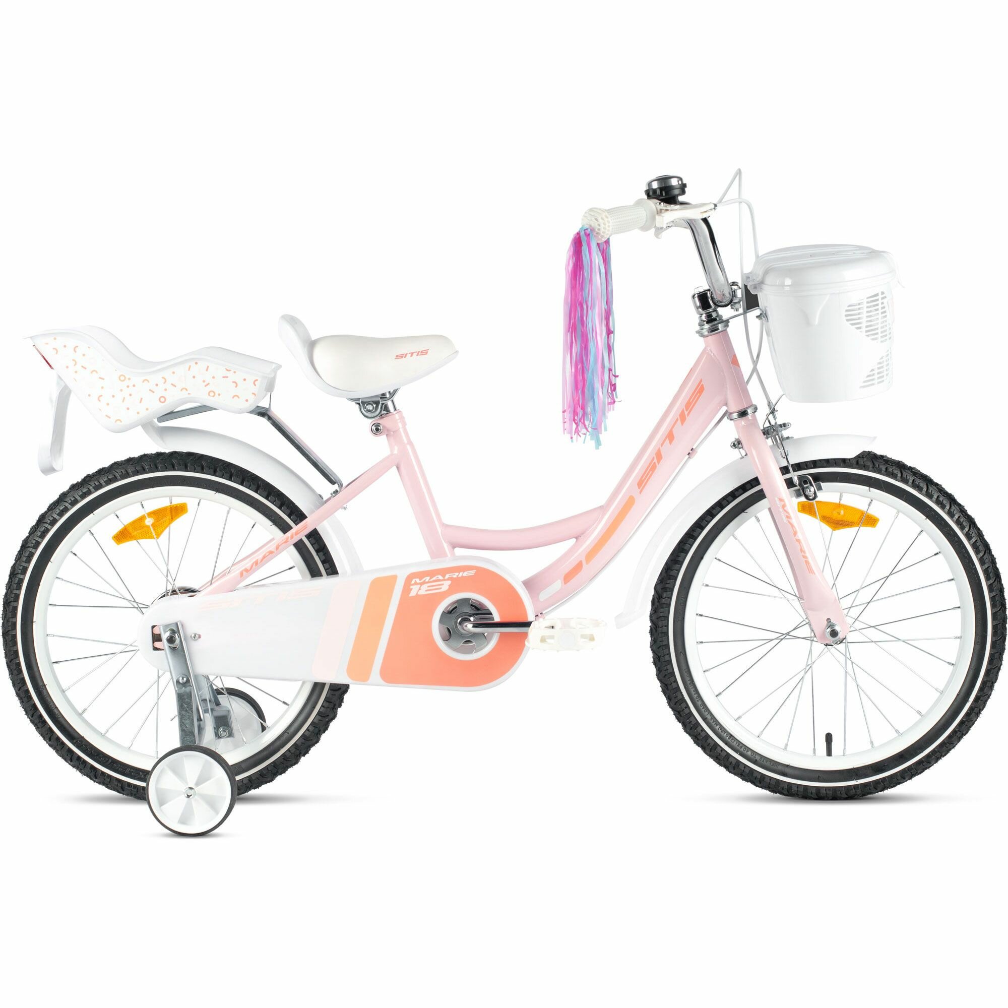 Велосипед Sitis Marie 18" (2024) детский для девочек, 115-130 см, Pink, ободной и барабанный тормоз