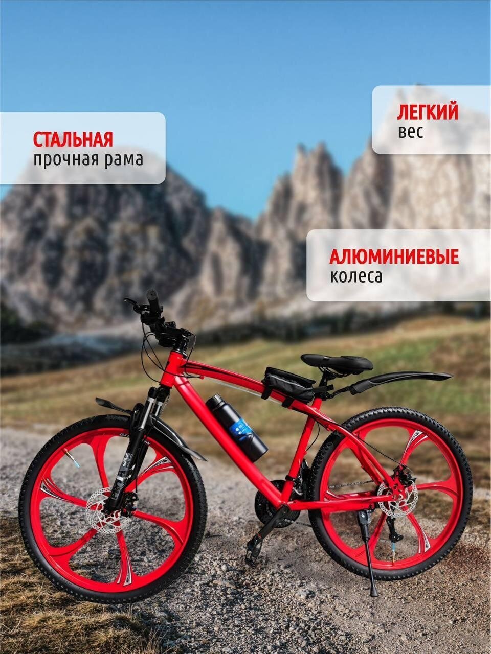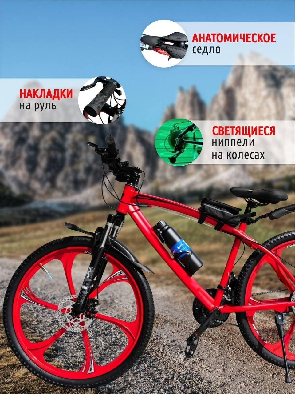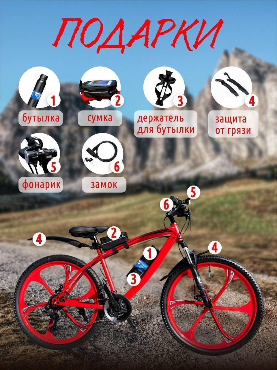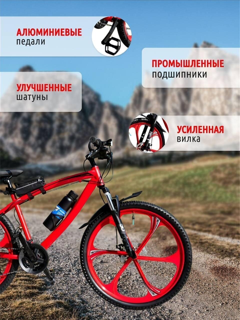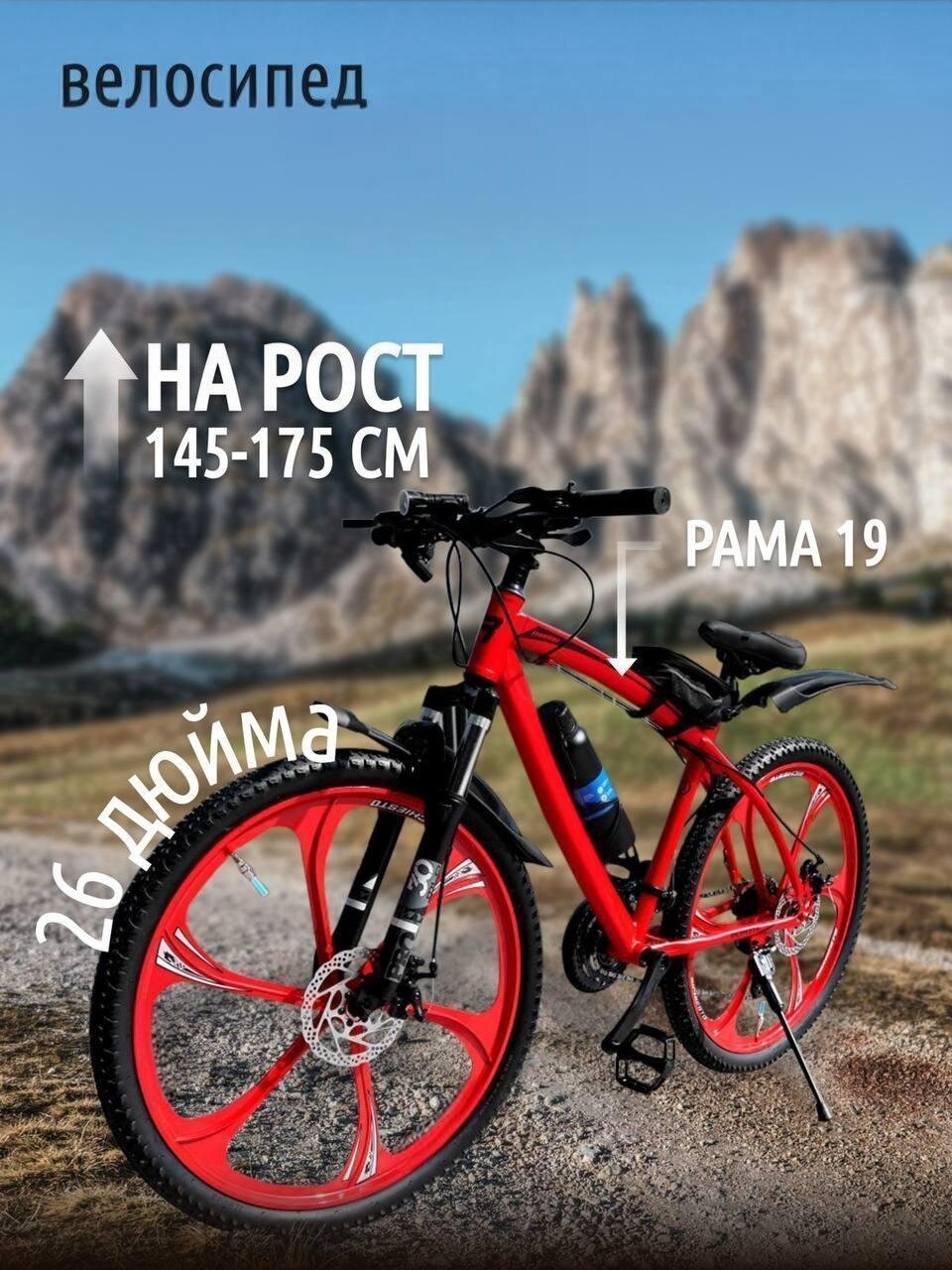 Велосипед горный Литые диски 26" Взрослый/Подростковый спортивный, красный интересное: