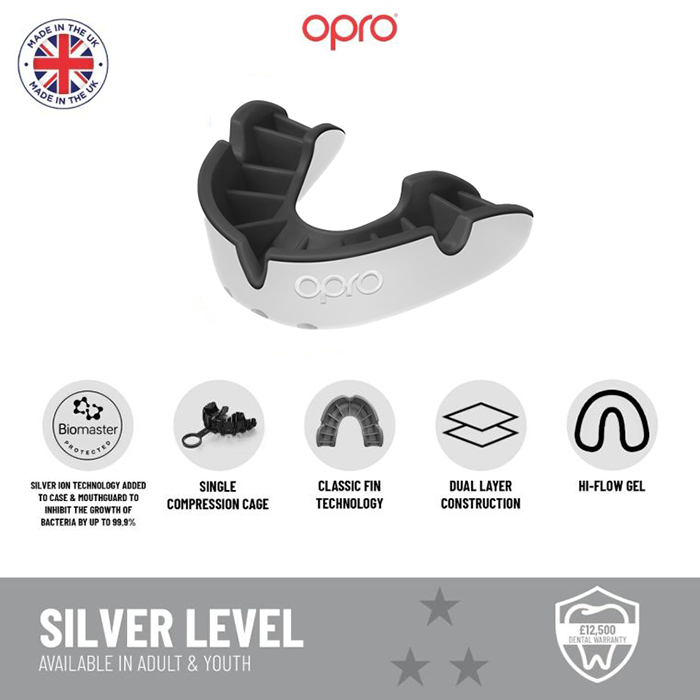 Купить Боксерская капа Opro Silver White/Black (Взрослый размер)