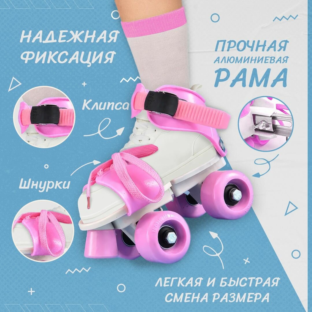Купить Раздвижные ролики на обувь Banwei Pink 18-23 см (28-35 размер)