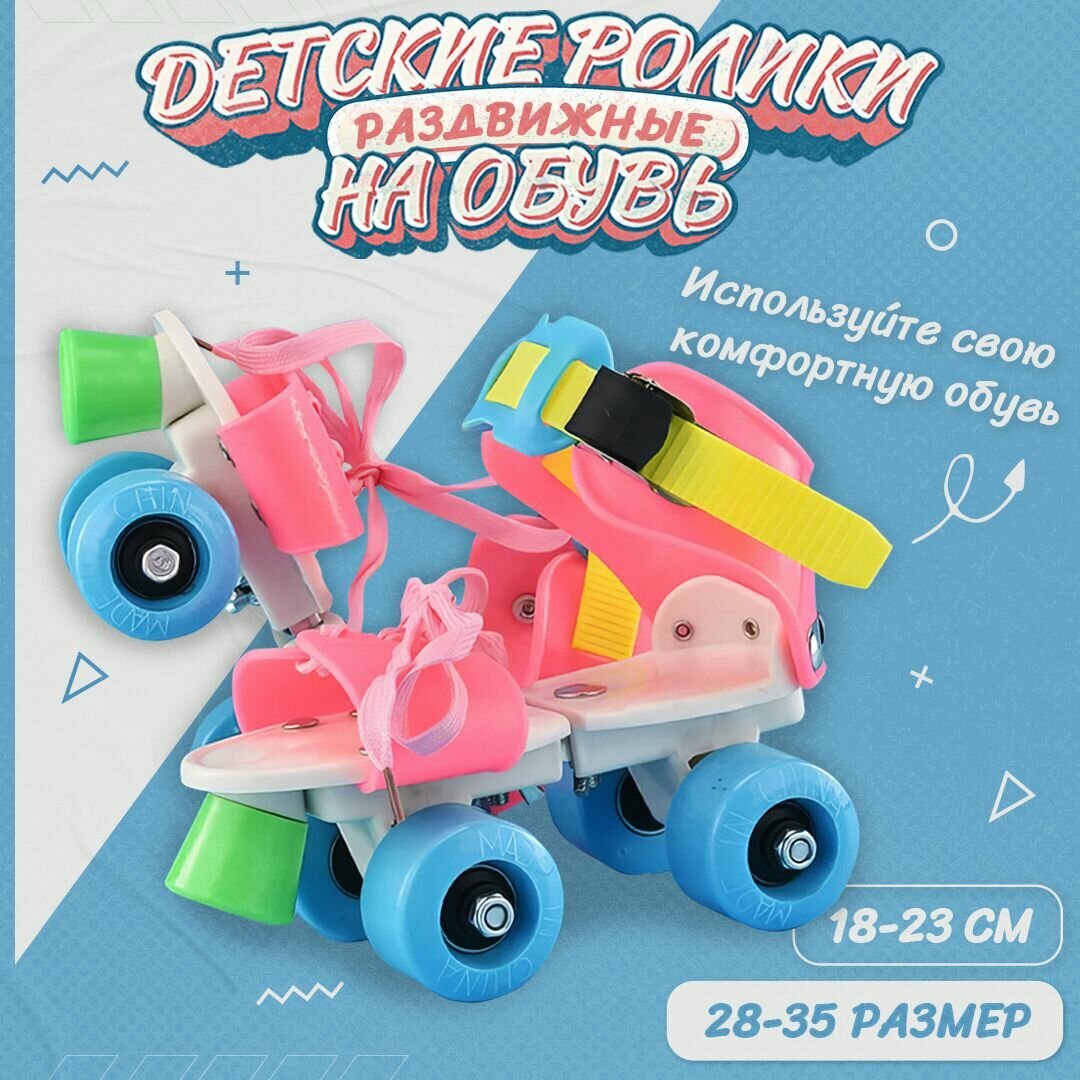 Купить Раздвижные ролики на обувь Banwei Pink Blue 18-23 см (28-35 размер)