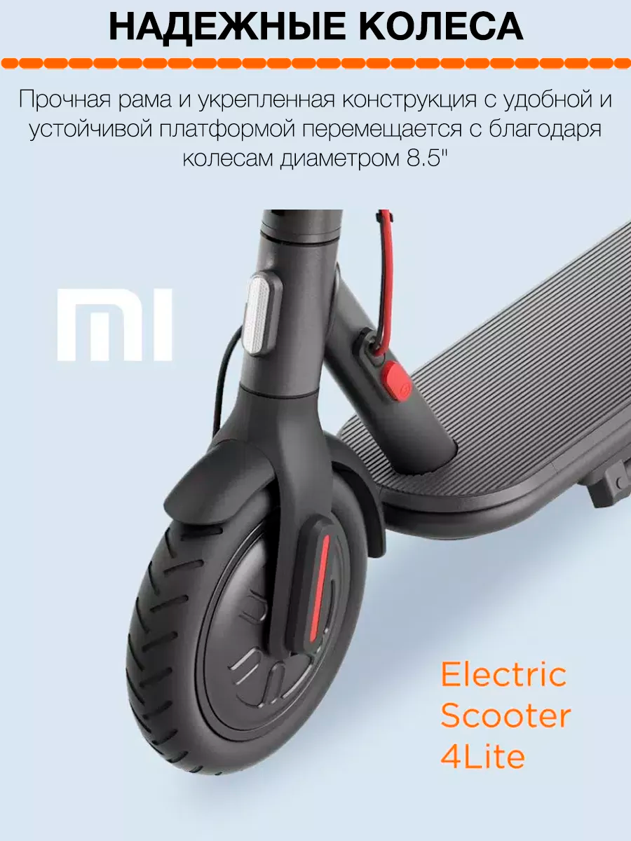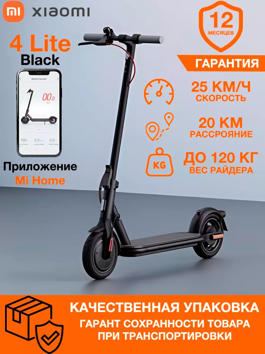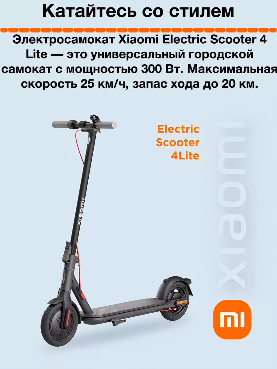 | Дополнительная информация | Комплектация Адаптер питания; Переходник под EU розетку; Шестигранный ключ; Удлинитель для насоса; Винты; Руководство пользователя; Буклет с информацией; Электросамокат Mijia Electric Scooter 4 Lite |