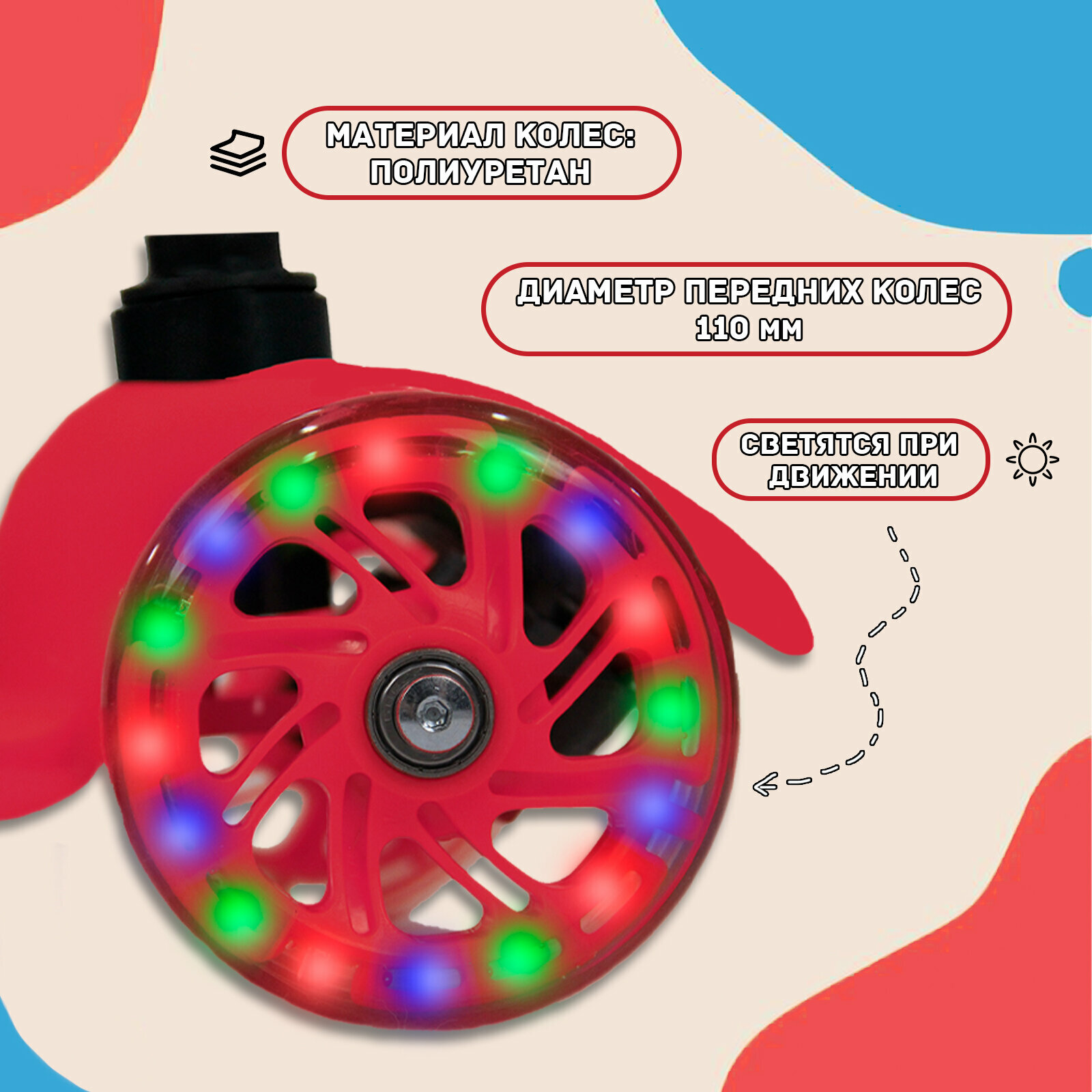 Купить Самокат трехколесный детский sx Scooter, со светящимися колесами, для детей 1-3 года, красный