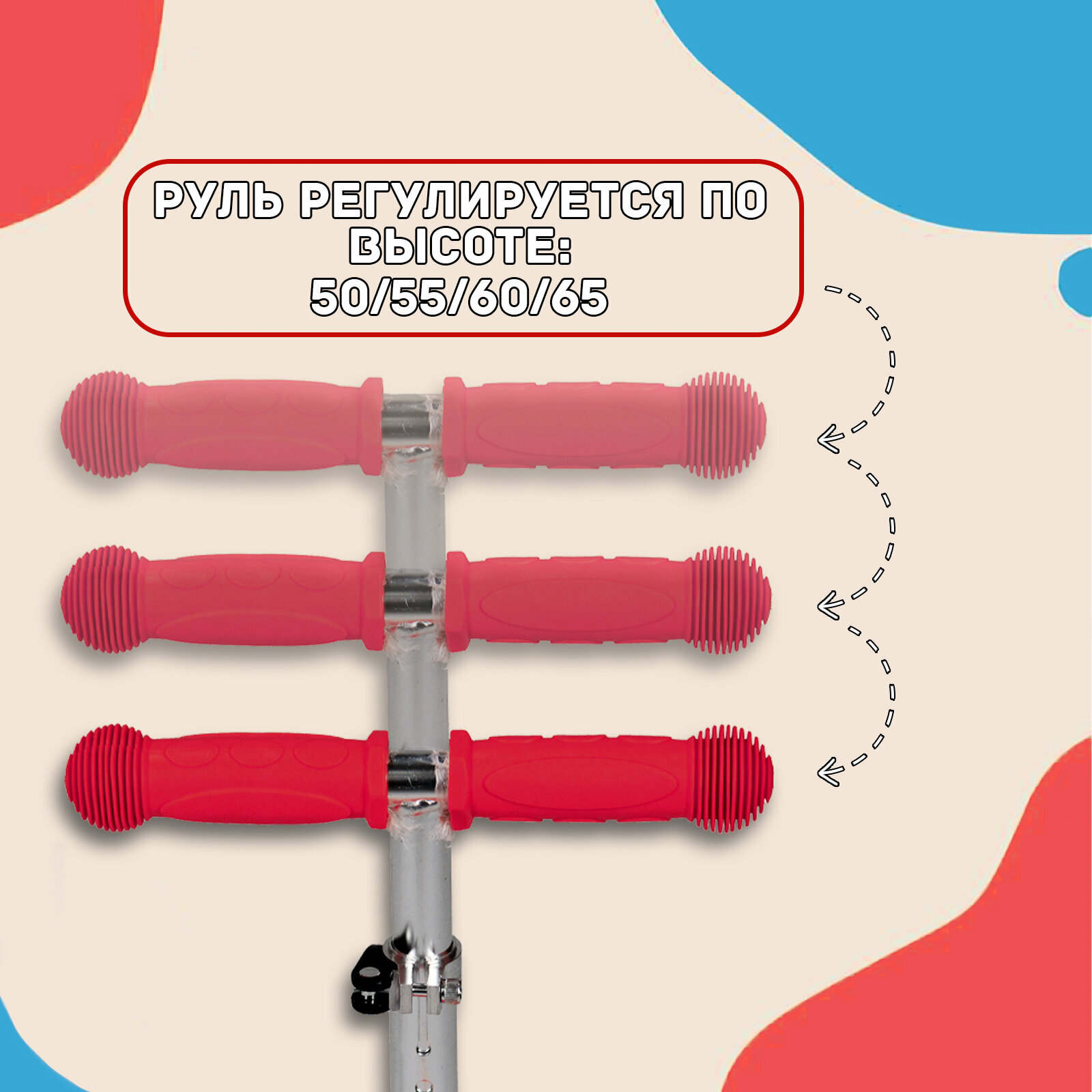 Самокат детский трехколесный COMIRON Yeenot "Зверята", регулируемая складная ручка, светящиеся колеса 110 и 75 мм, нагрузка до 40 кг, розовый / 1 шт.