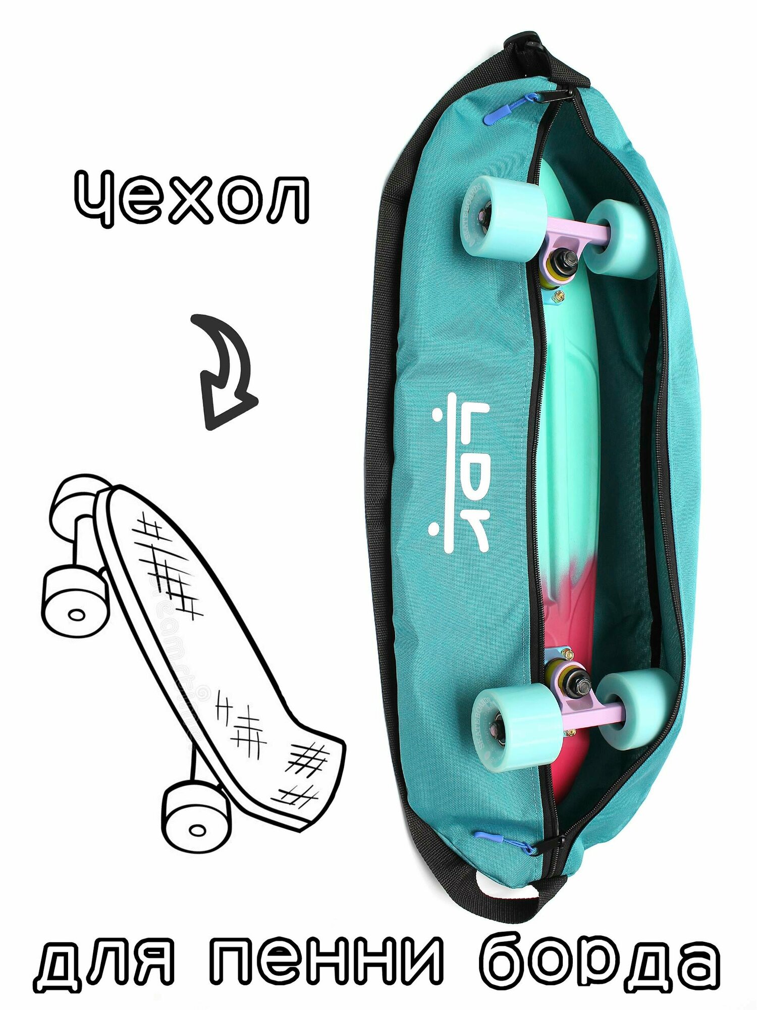 СохранитьЧехол сумка для пенни борда / скейтборда / миникруизера 22.5" мятный интересное:
