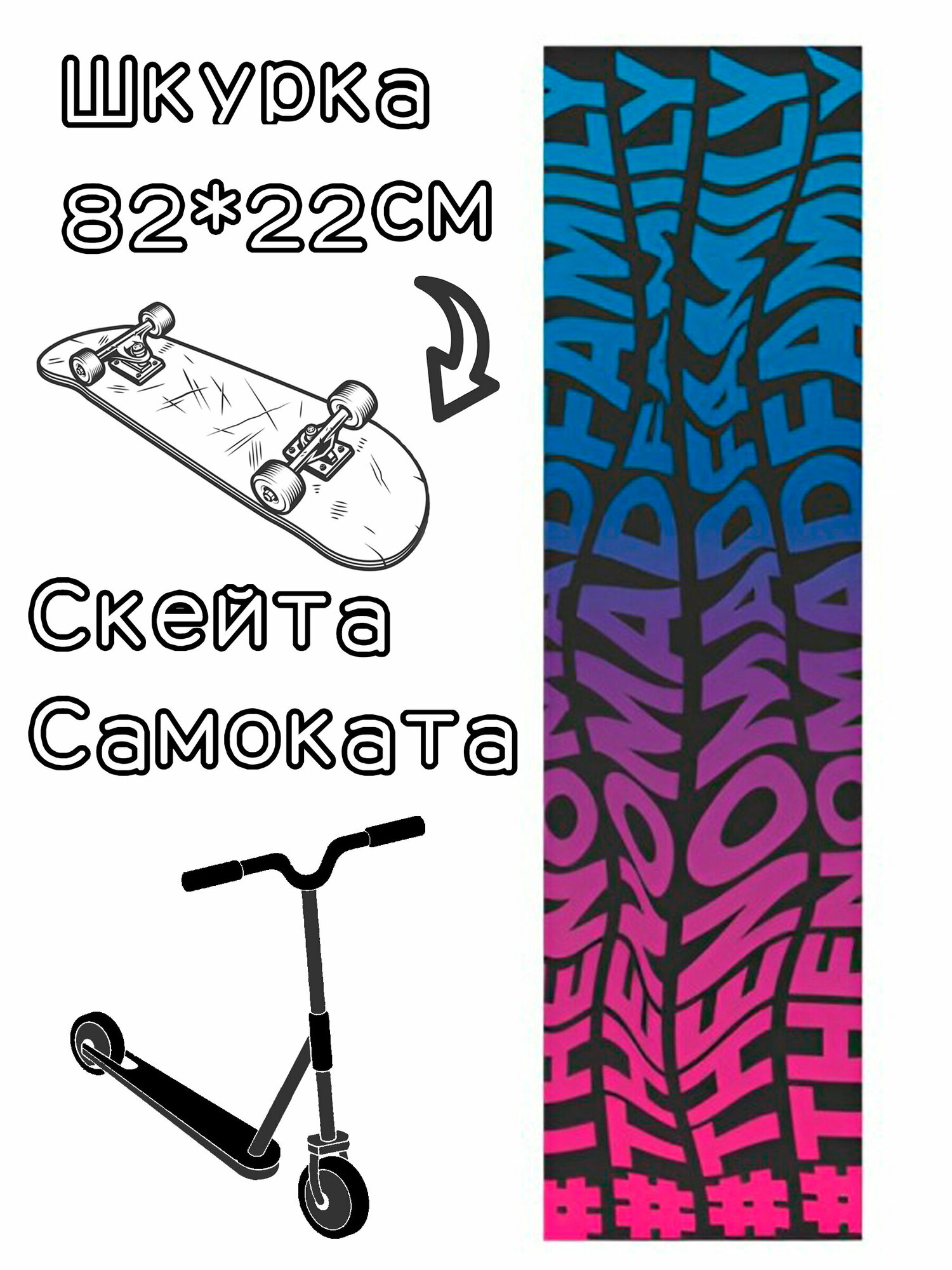 Шкурка Nomad Griptape Psicodelic Black 9X33 для скейтборда / самоката интересное: