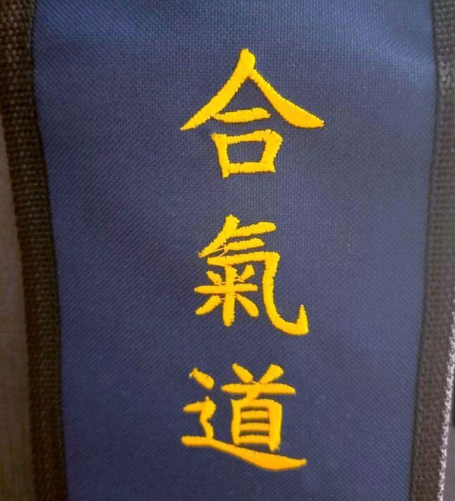 Комплект тренировочного оружия из бука (боккен 102см, дзё 130см, танто 29см, черный чехол с вышивкой Айкидо)