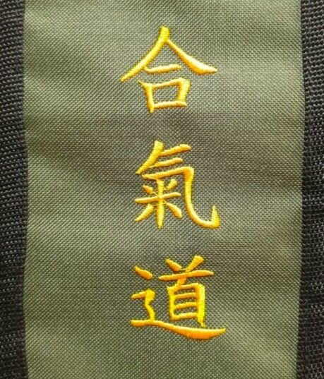 Комплект тренировочного оружия из бука (боккен 102см, дзё 130см, танто 29см, черный чехол с вышивкой Айкидо)