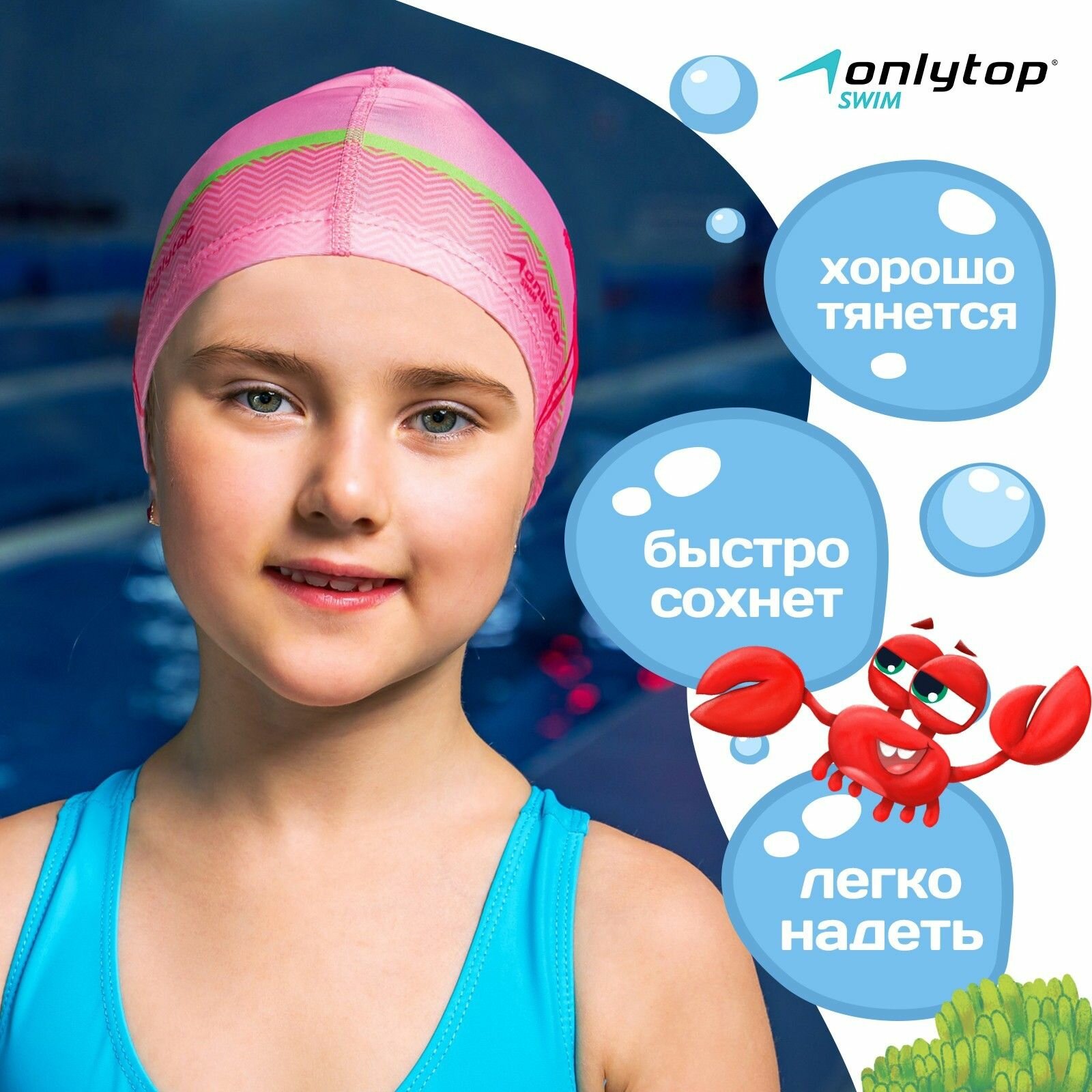 Шапочка ONLYTOP "Фламинго", для плавания, детская, тканевая, обхват 46-52 см, цвет розовый интересное: