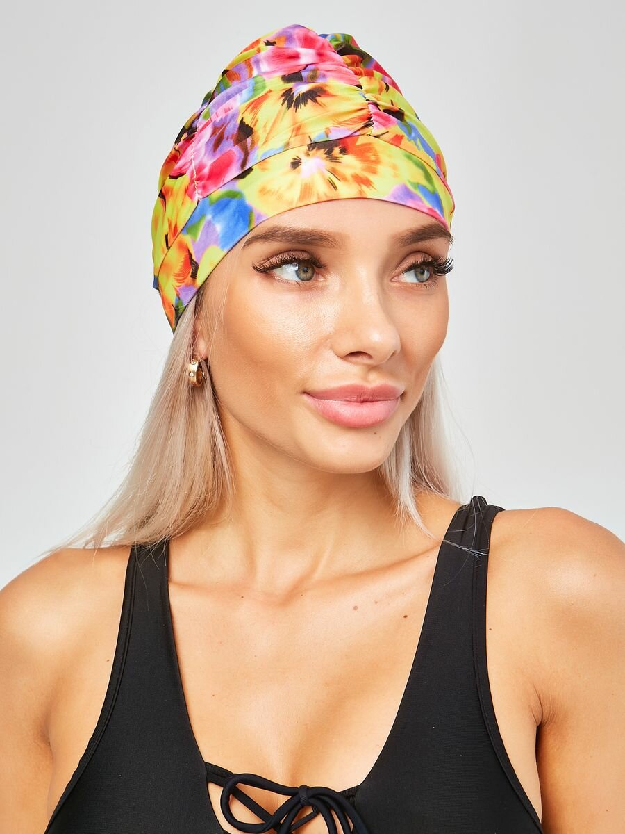 Купить Шапочка для плавания женская для длинных волос в аквазоне GYM TEAM 54-60см Цветы день