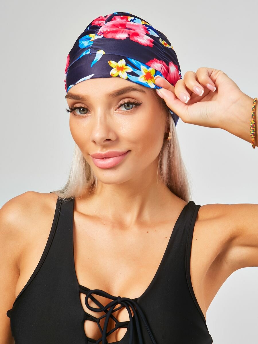 Шапочка для плавания женская для длинных волос в аквазоне GYM TEAM 54-60см Цветы день