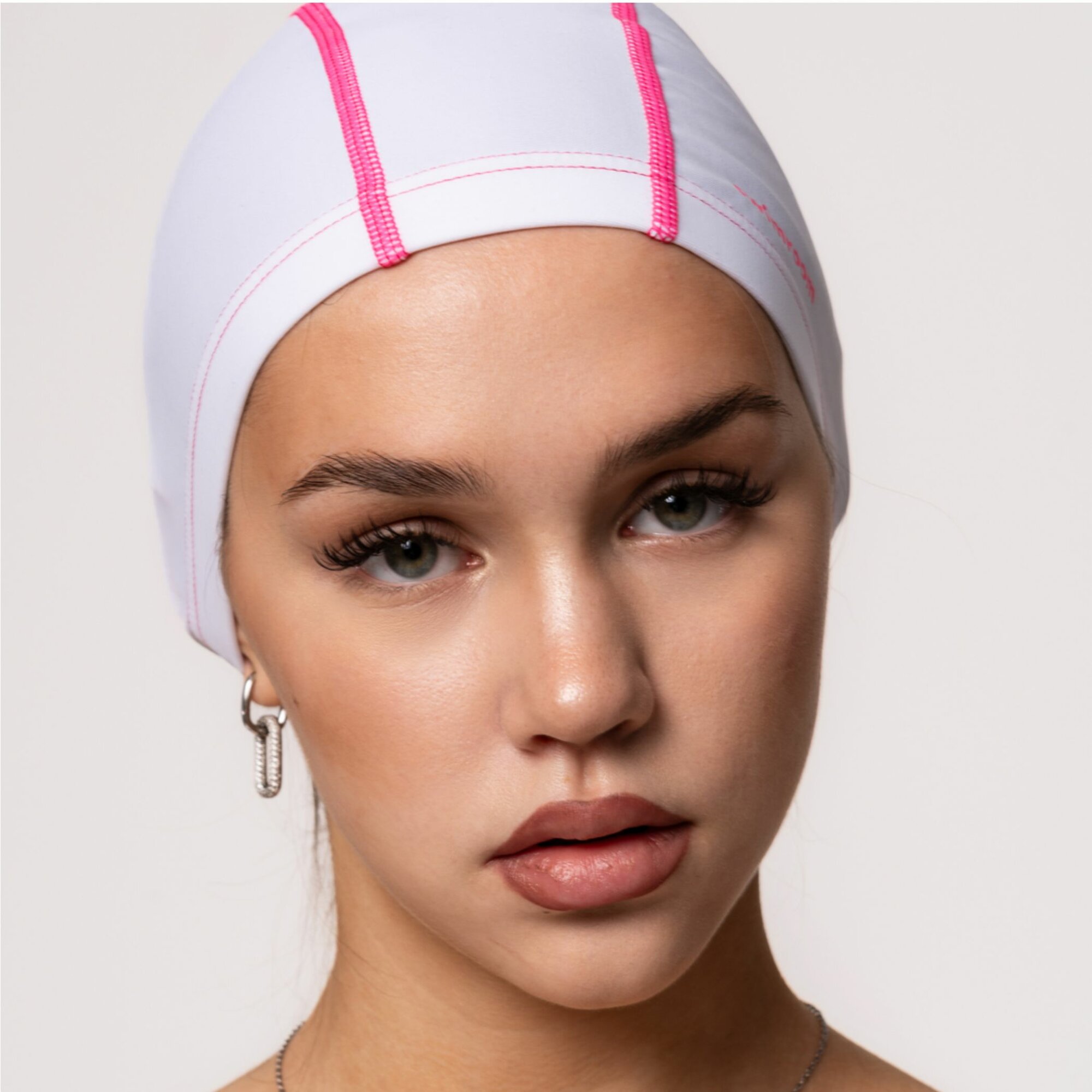 Купить Тканевая шапочка для плавания / бассейна SwimRoom “Lycra”, размер 56-60, цвет белый/розовый