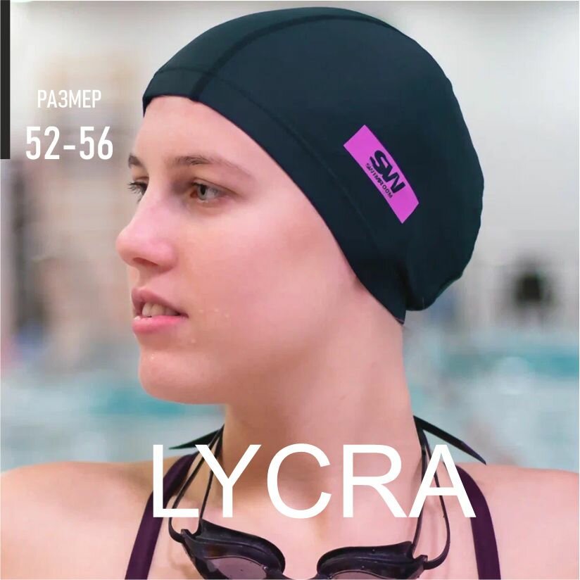 Купить Тканевая шапочка для плавания / бассейна SwimRoom “Lycra”, размер 52-56, цвет черный