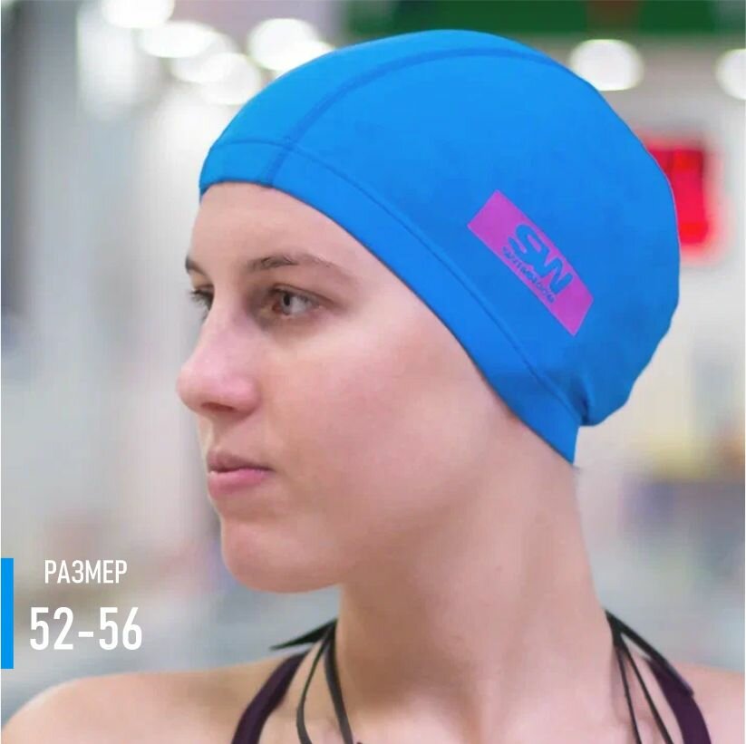 Купить Тканевая шапочка для плавания / бассейна SwimRoom “Lycra”, размер 52-56, цвет голубой