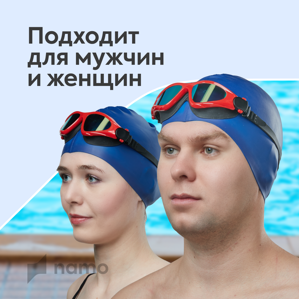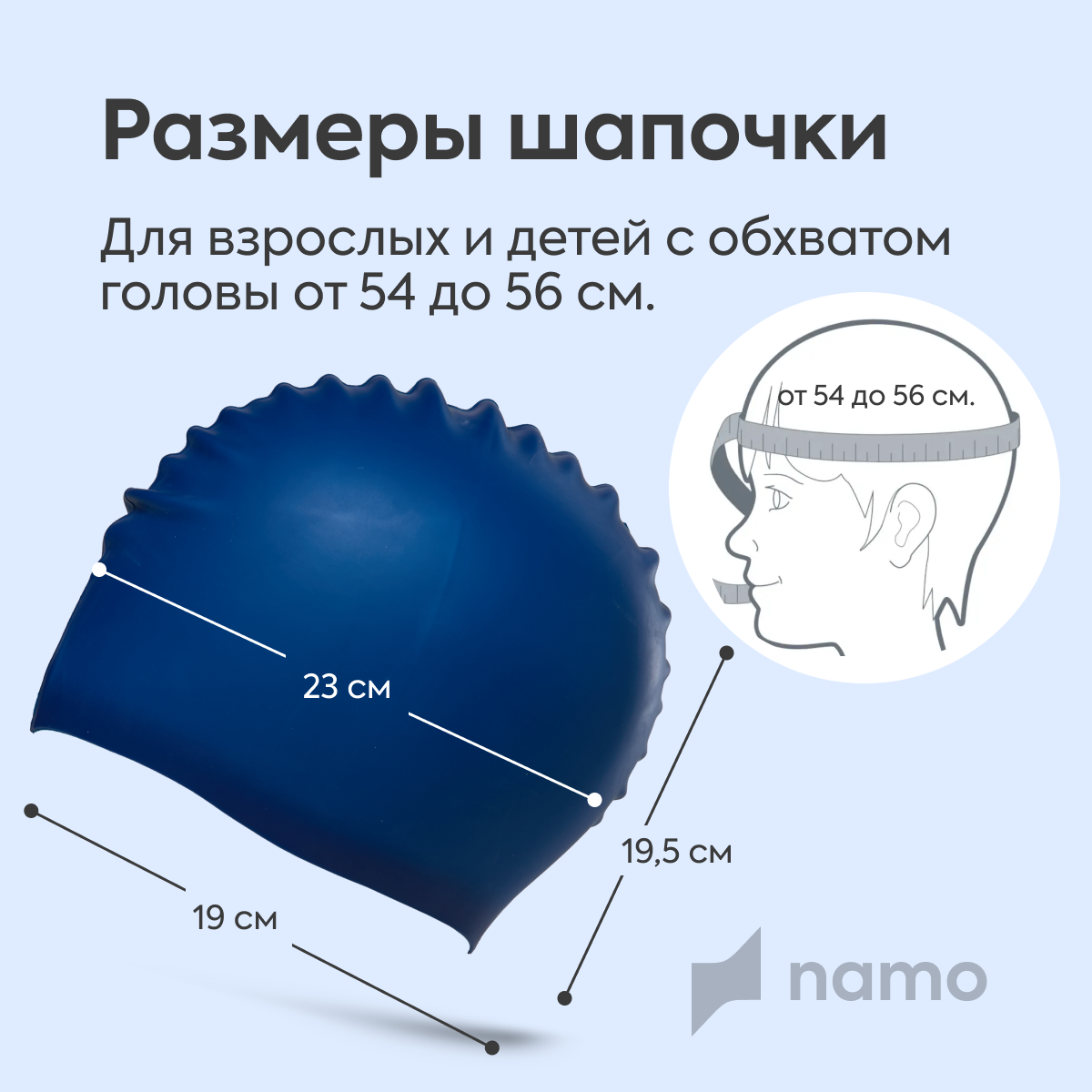 Шапочка NAMO, для плавания, силикон, голубая, 54-56 размер