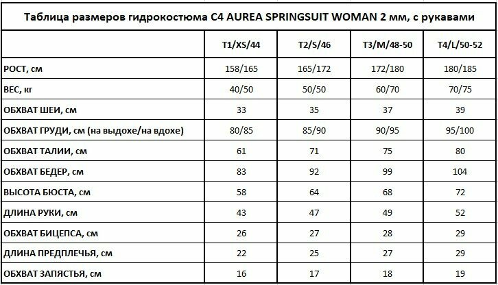 Гидрокостюм для плавания C4 AUREA SPRINGSUIT WOMAN 2 мм, с рукавами, р-р 4/L
