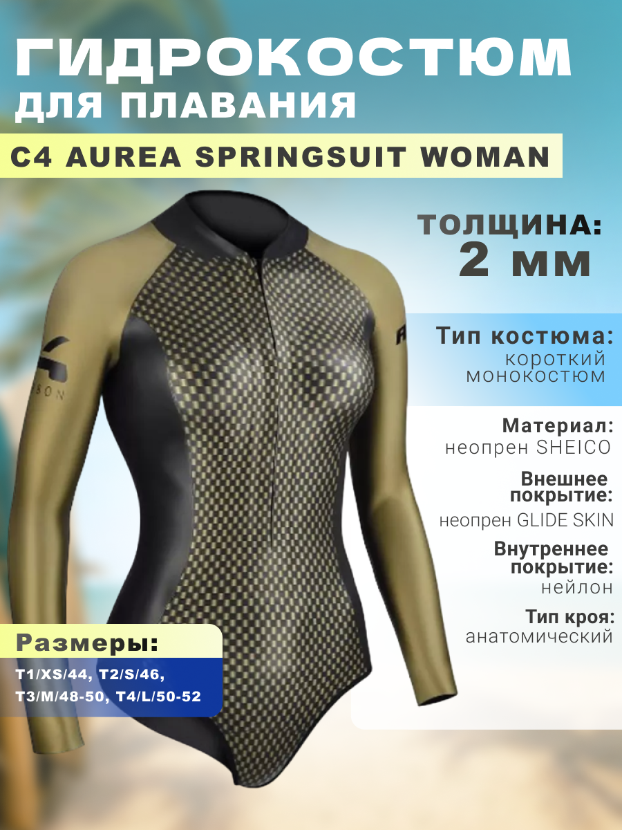 Купить Гидрокостюм для плавания C4 AUREA SPRINGSUIT WOMAN 2 мм, с рукавами, р-р 2/S