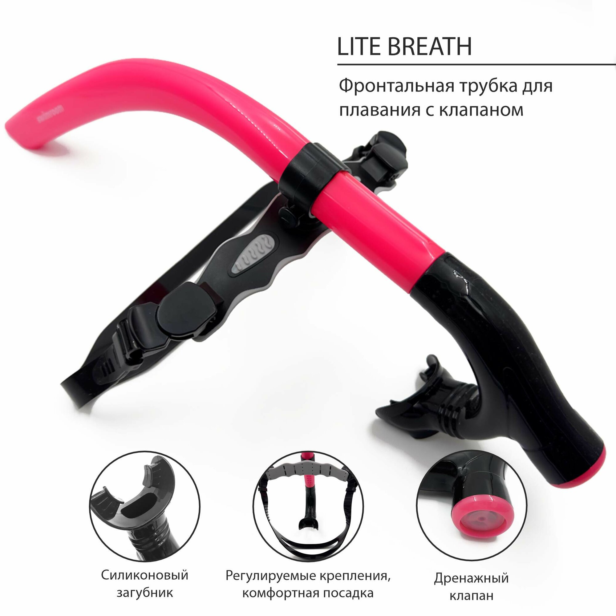 Фронтальная трубка для плавания SwimRoom "Lite Breath Snorkel", цвет розовый интересное: