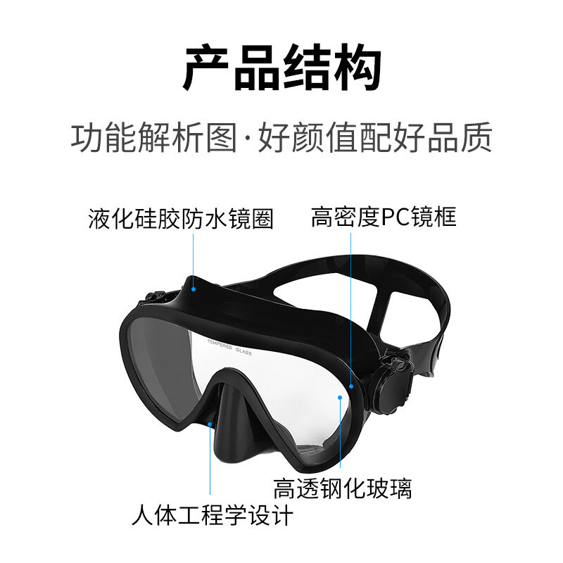 Очки для дайвинга, для взрослых, закаленное стекло, черные