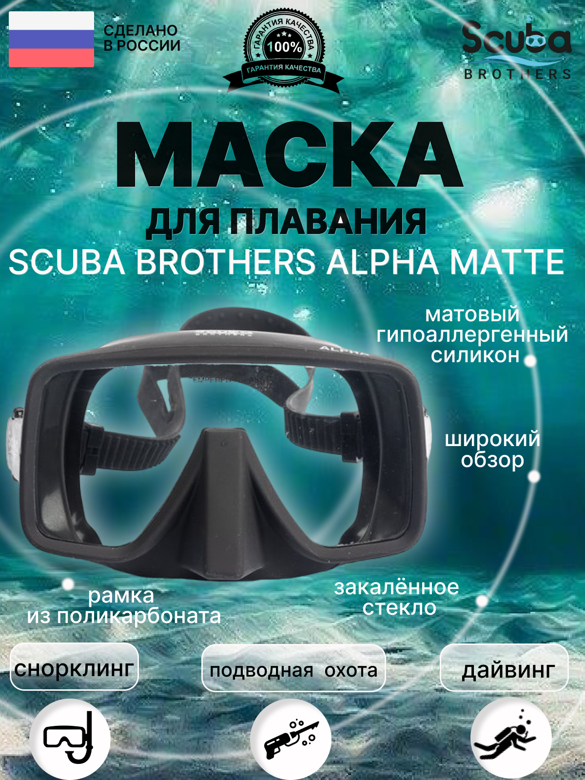 Маска SCUBA BROTHERS ALPHA MATTE, черная матовая интересное: