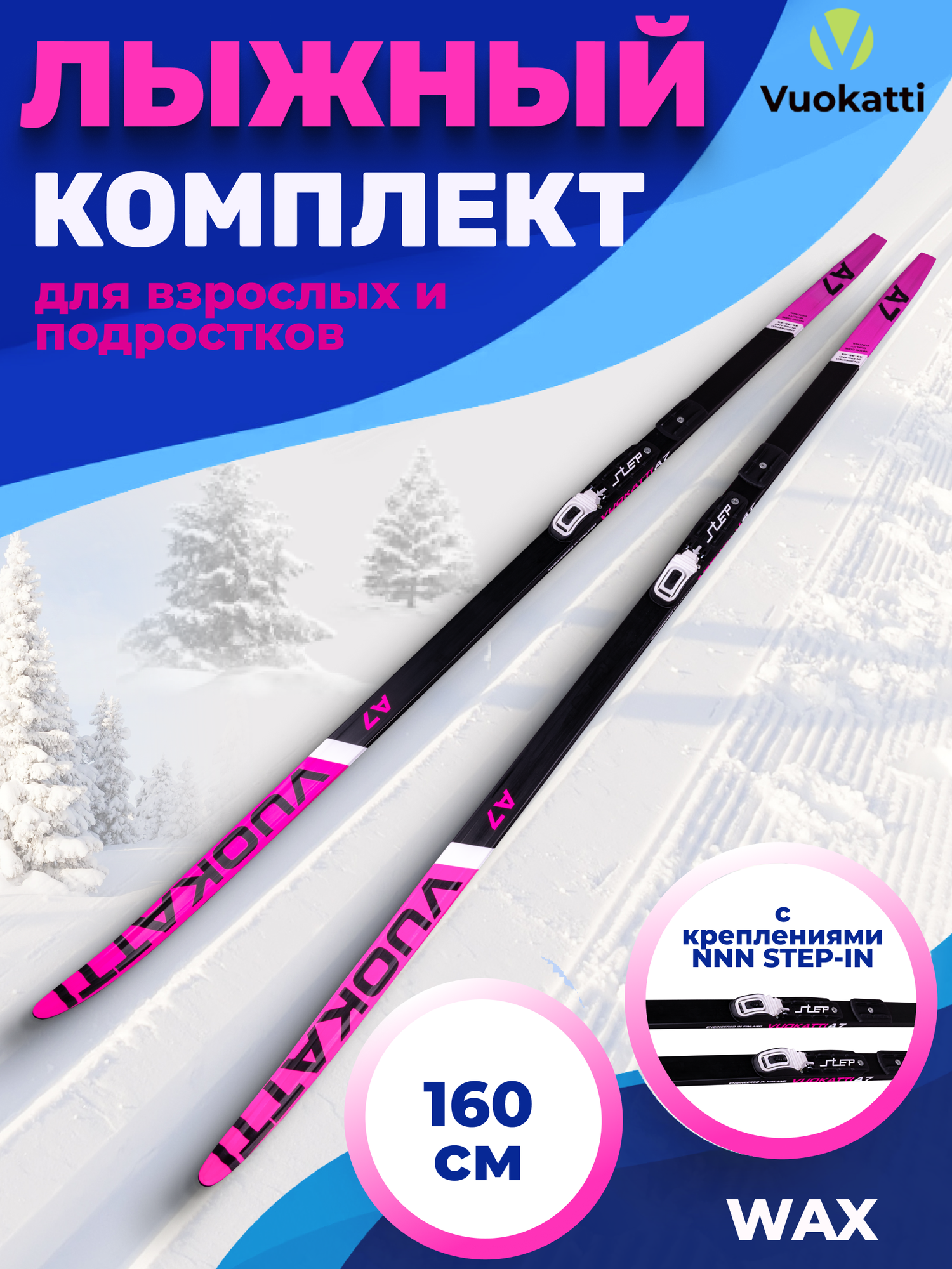 Купить Лыжи беговые 160 см VUOKATTI с креплением NNN Step-in (Wax) Black Magenta без палок