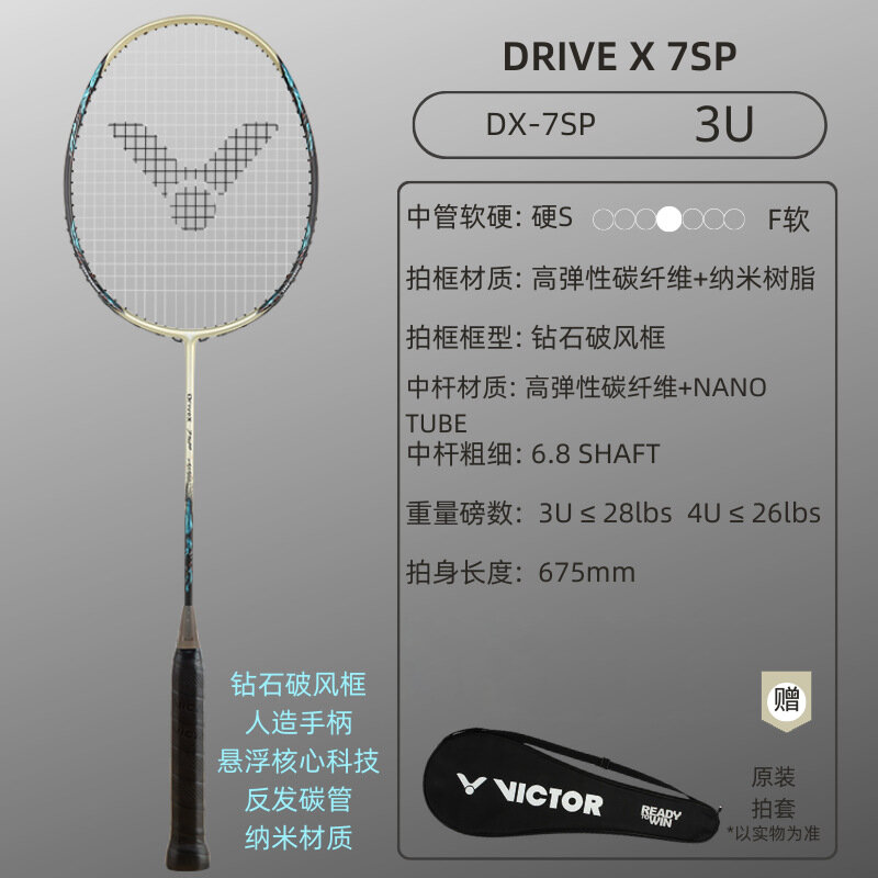 Ракетка Victor Victory Nano 7 DX7SP, для бадминтона, углеродное волокно, цвет Air shot 4